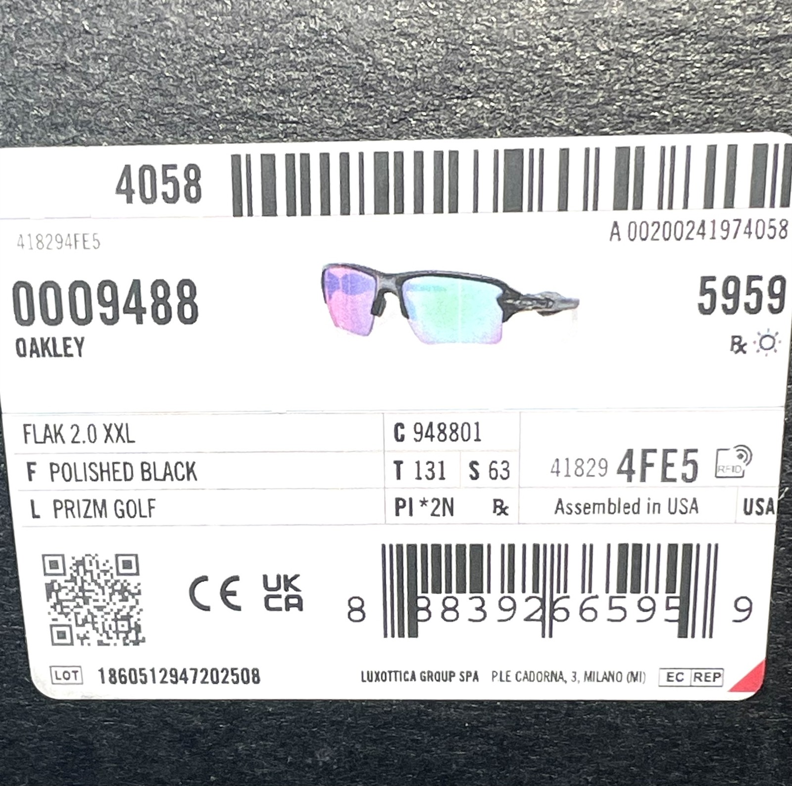 Oakley Flak 2.0 XXL Sunglasses Polished Black Prizm Golf OO9488-0163 with Case