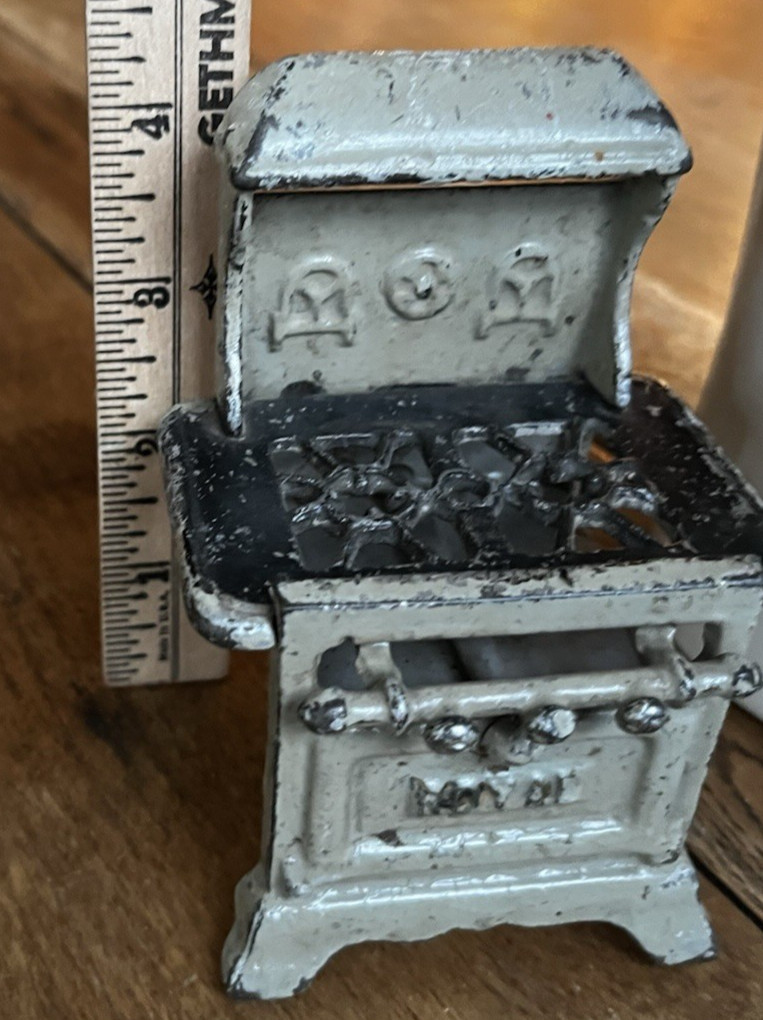 как выглядит Antique ROYAL Cast Iron Toy Stove c.1915 Advertising Premium - Missing Back Leg фото