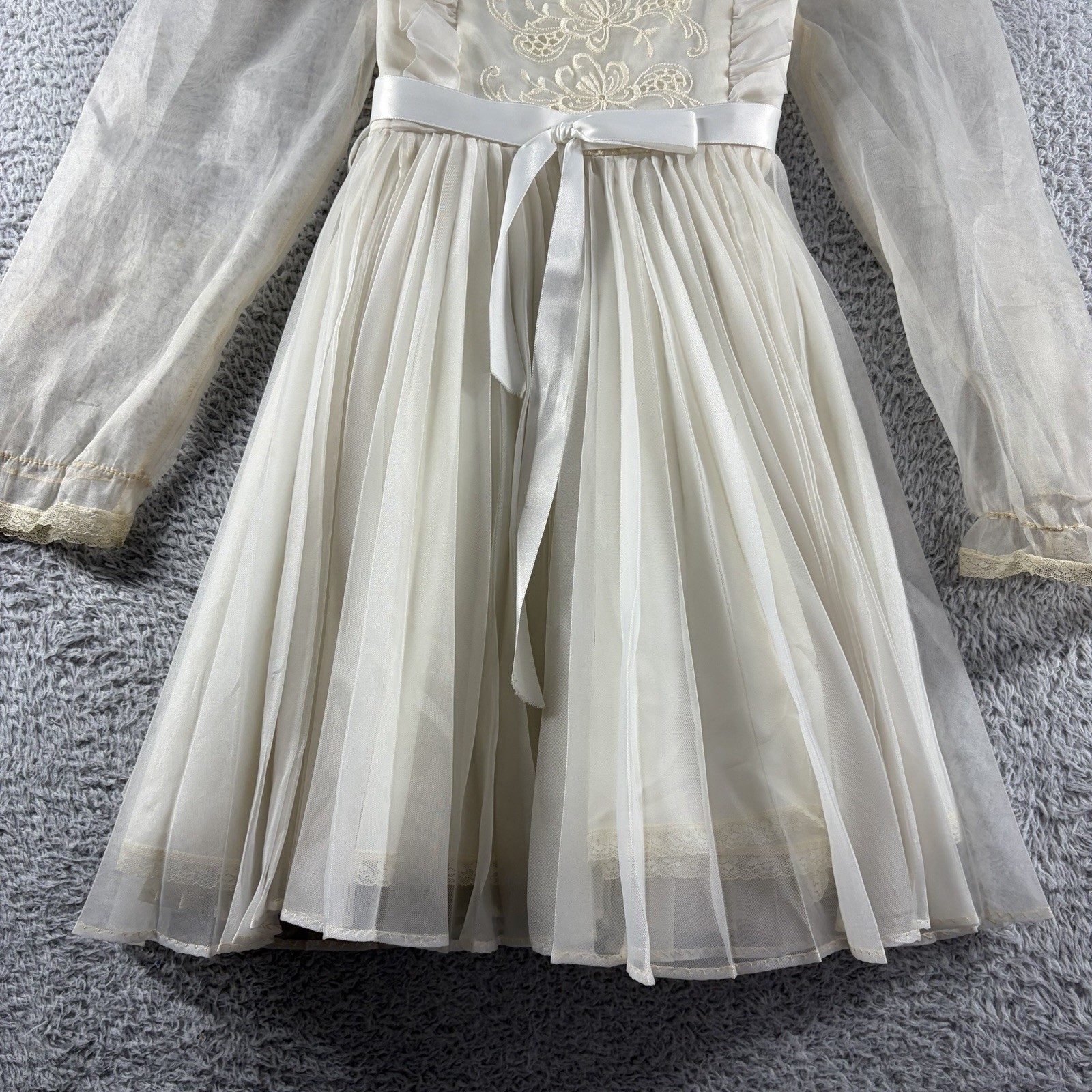 как выглядит Vintage Madonna by Haddad Dress Girls 7 Ivory White Lace Sheer Ruffles USA фото
