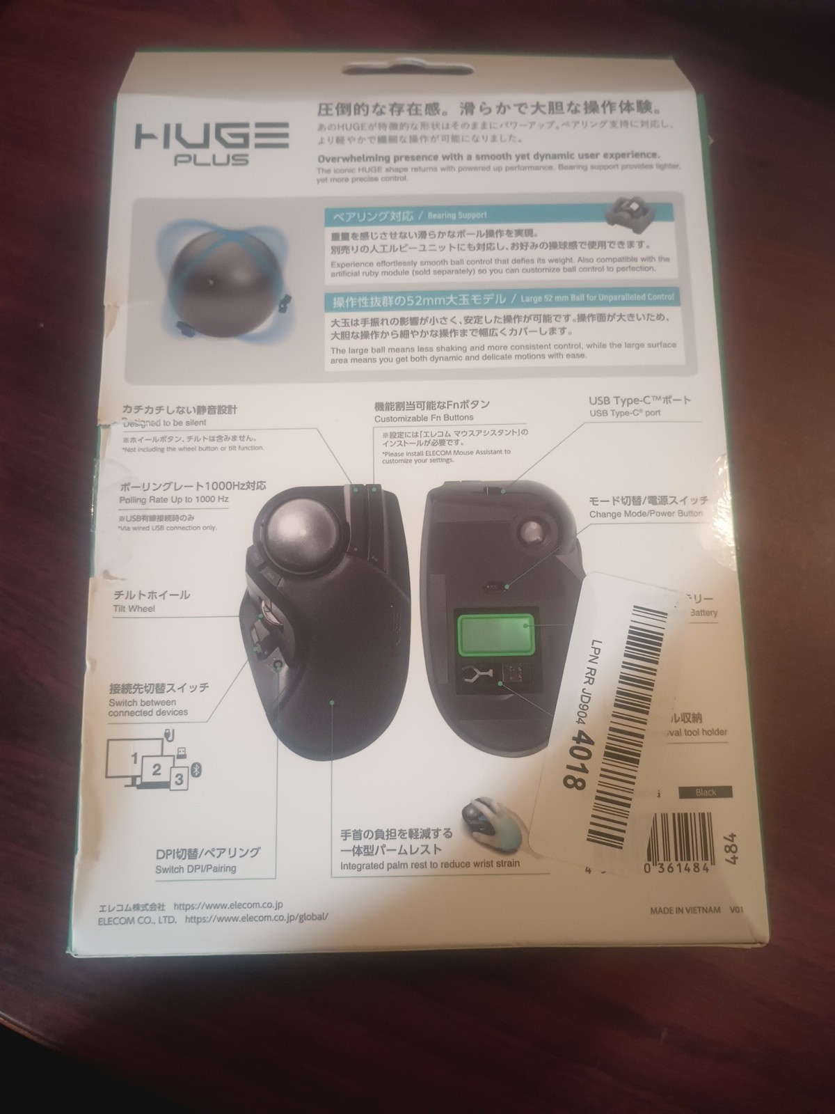 ELECOM Huge Plus Wireless Trackball Mouse, Ergonomic 52mm Large Ball, Multi-C...