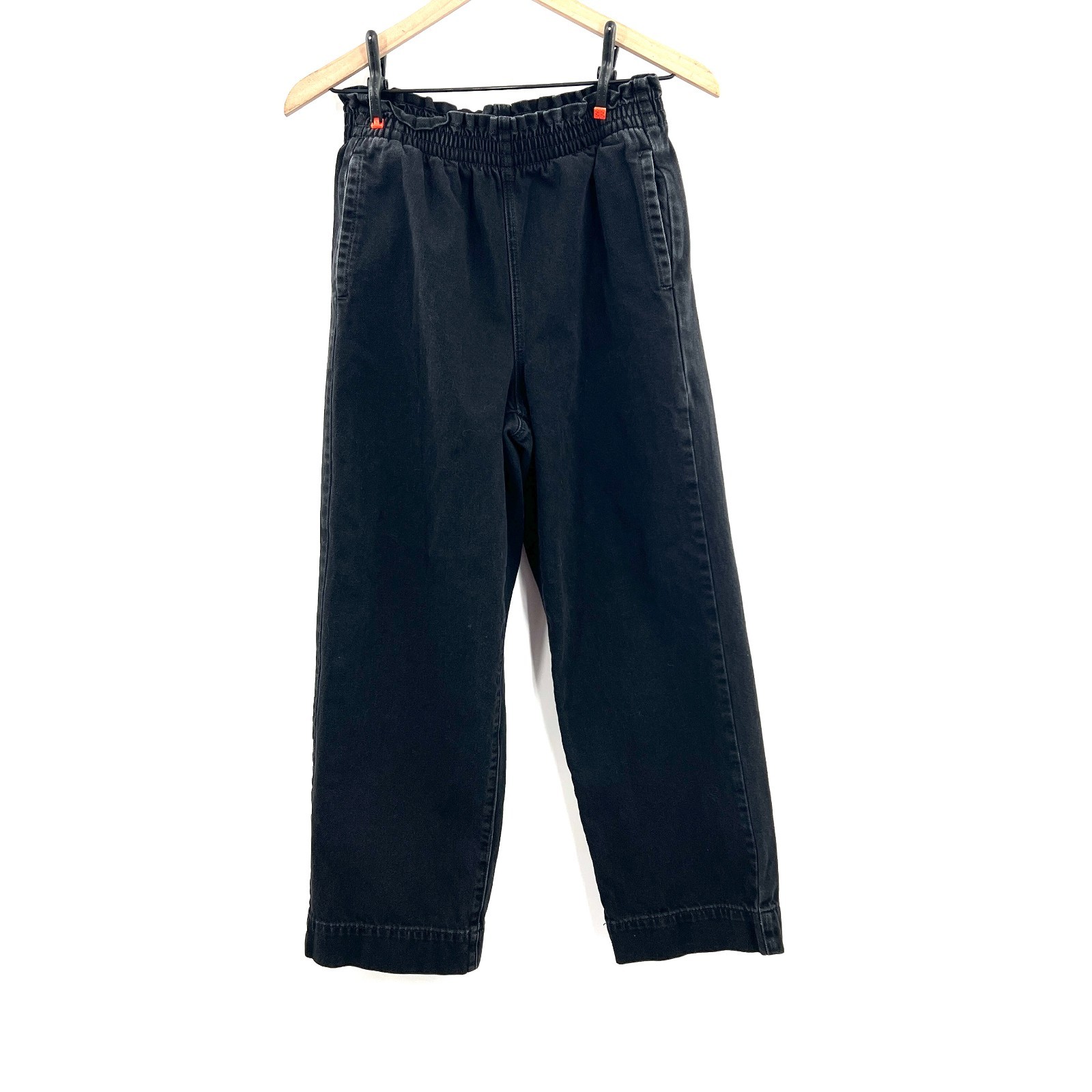 American Eagle AEO high rise elastic waist baggy wide leg jeans charcoal black 4