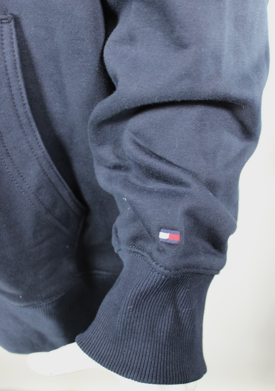 как выглядит HILFIGER Mens Medium Navy/White Stitched Logo Hoodie Cotton Sweatshirt MSRP 79 фото