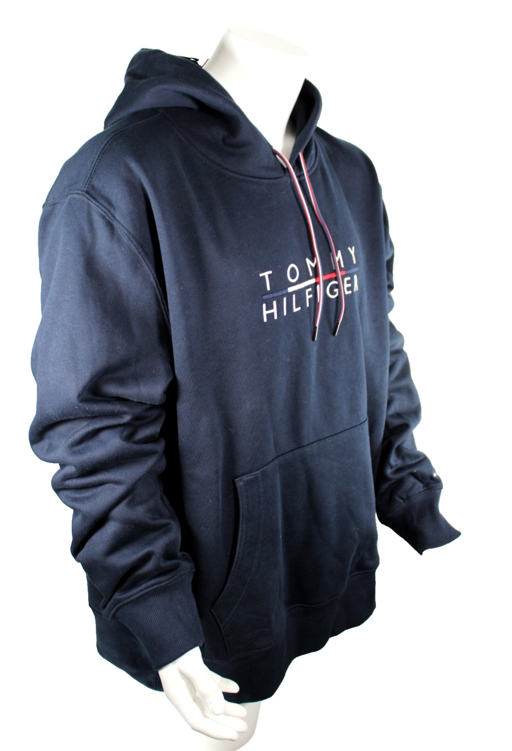 HILFIGER Men's Medium Navy/White Stitched Logo Hoodie Cotton Sweatshirt MSRP 79