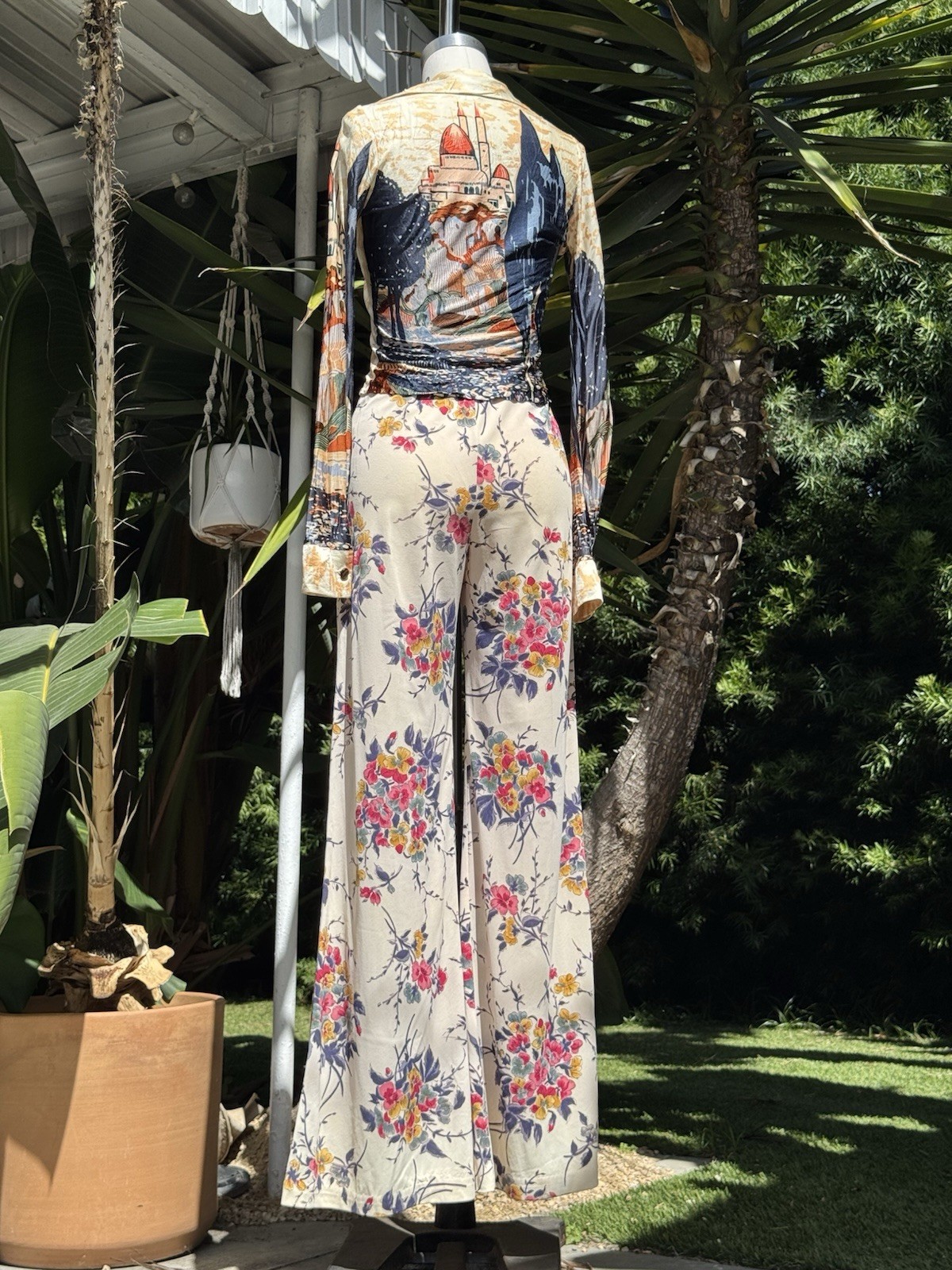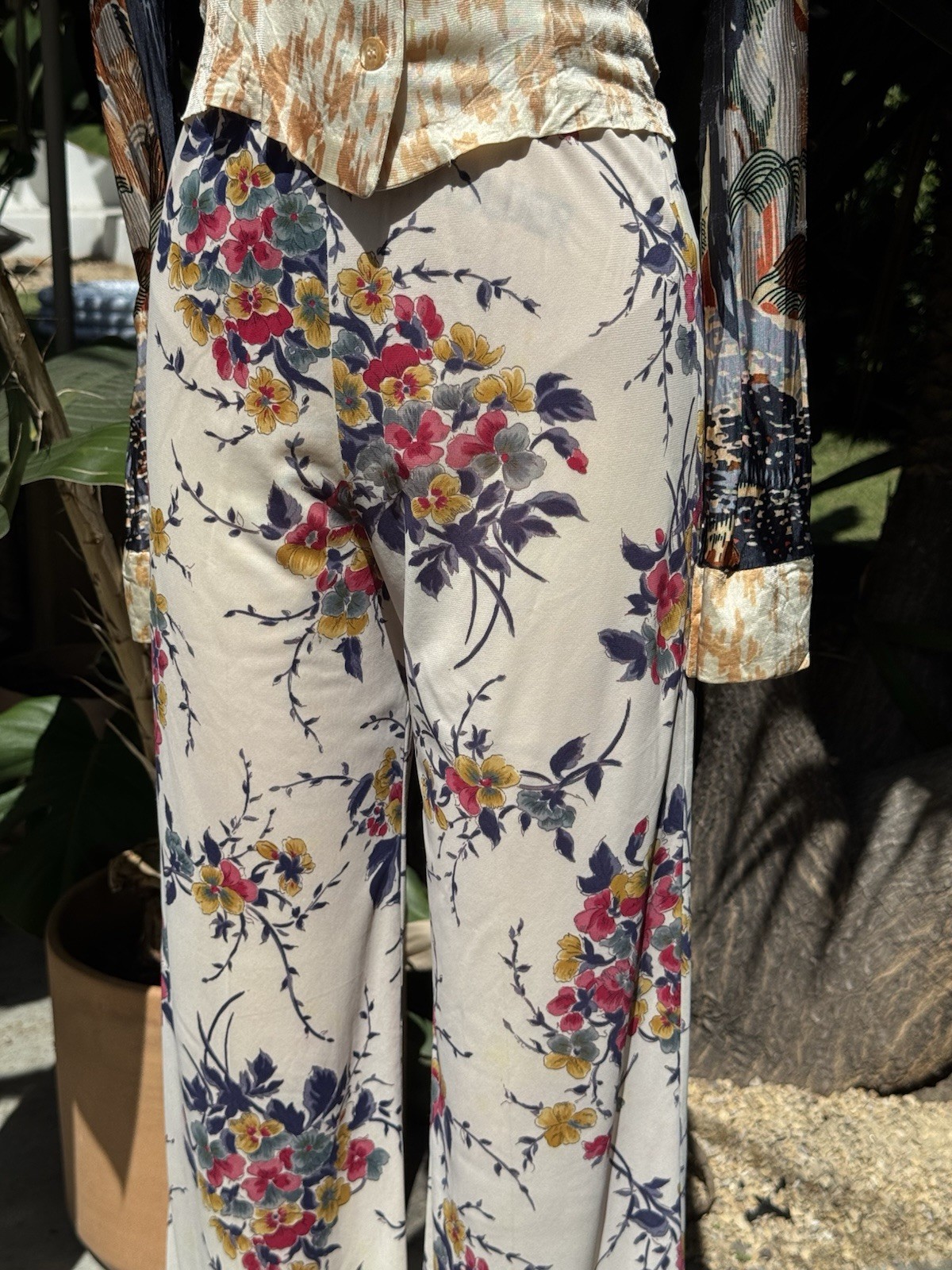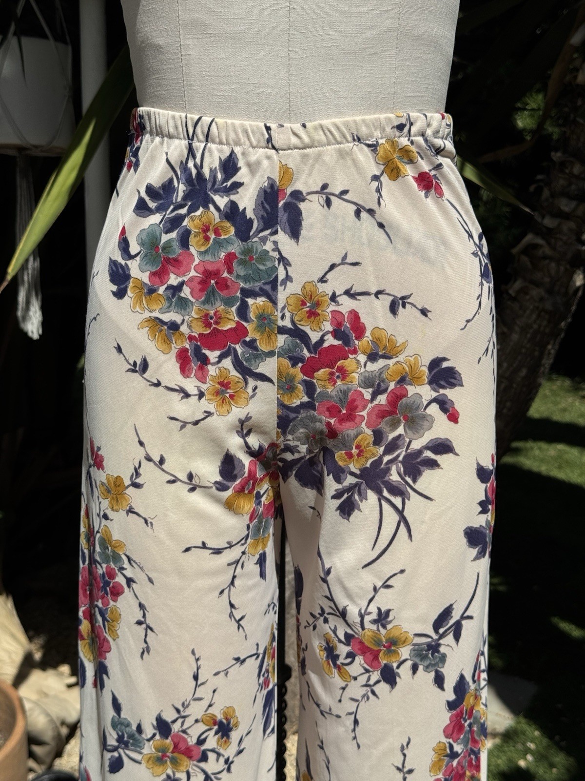 Vintage 70s Floral High Waisted Wide Leg Pants S M