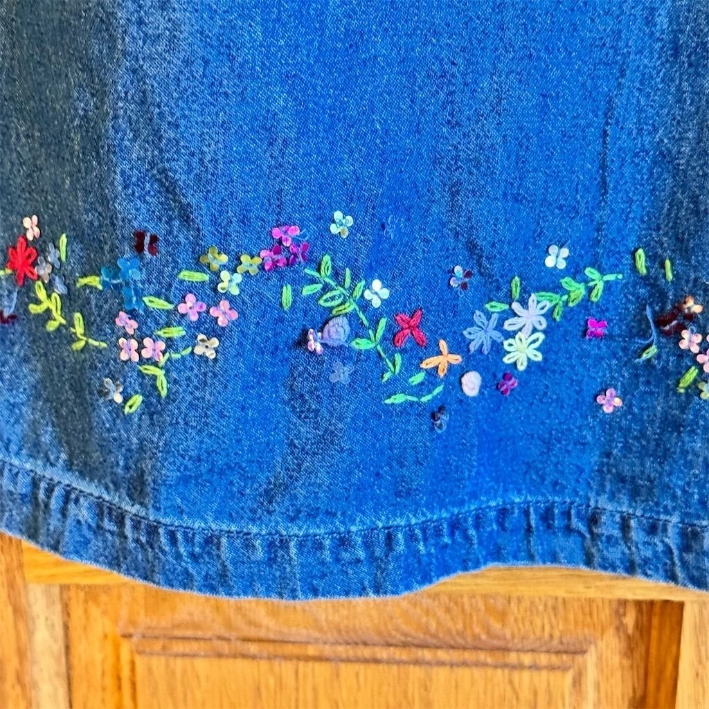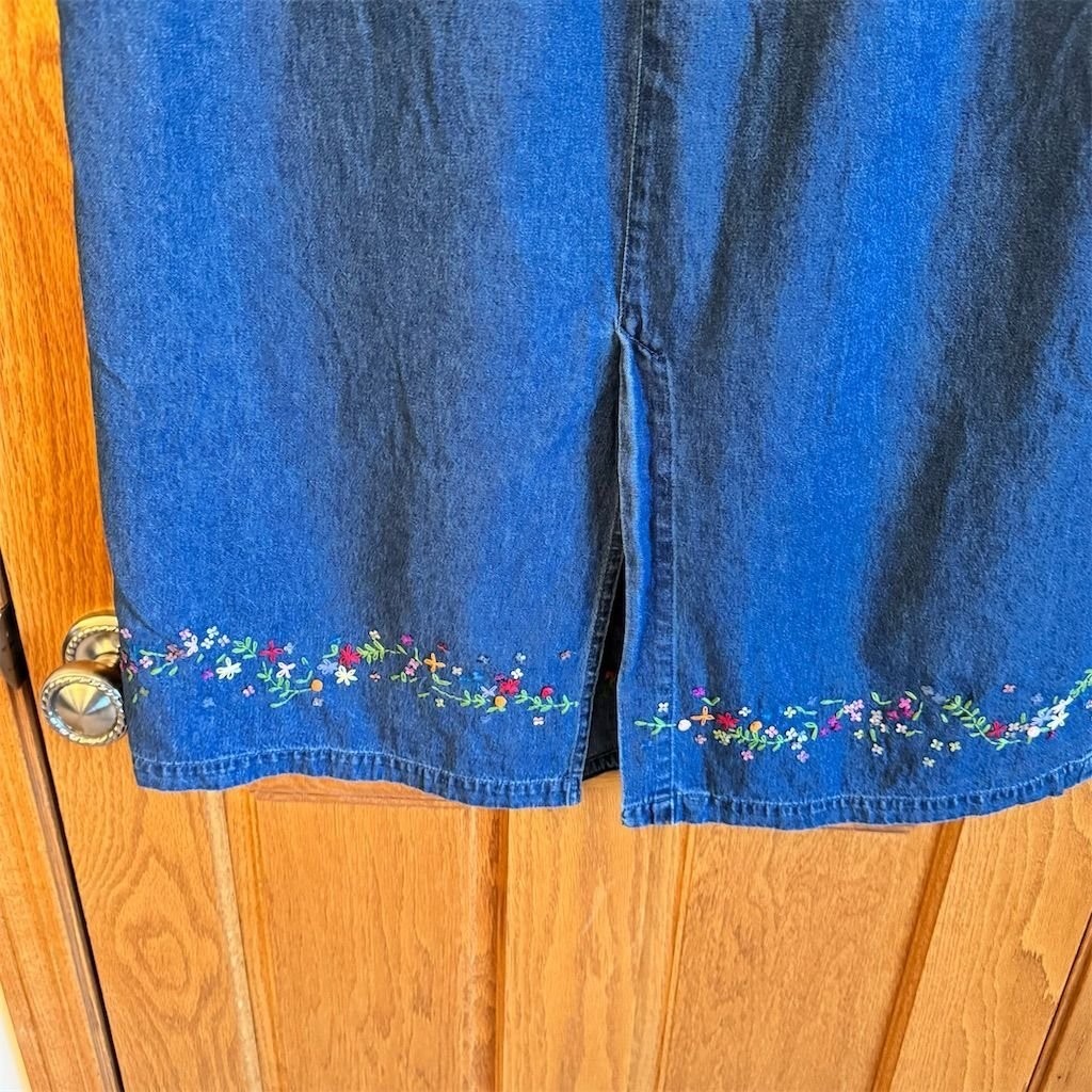 как выглядит Quacker Factory Womens L Denim Maxi Skirt Floral Embroidery Vintage фото