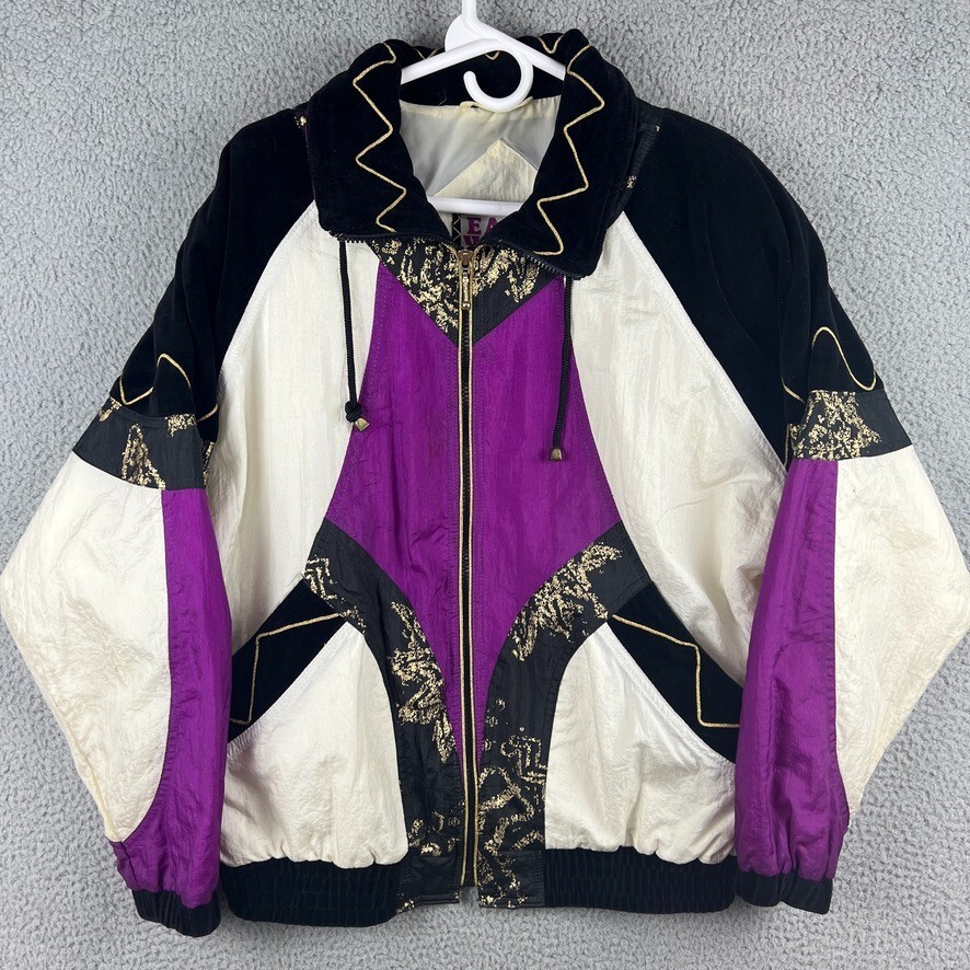 Vintage East West Nylon 80 s Retro 2 Piece Purple Multi Color Block Tracksuit S