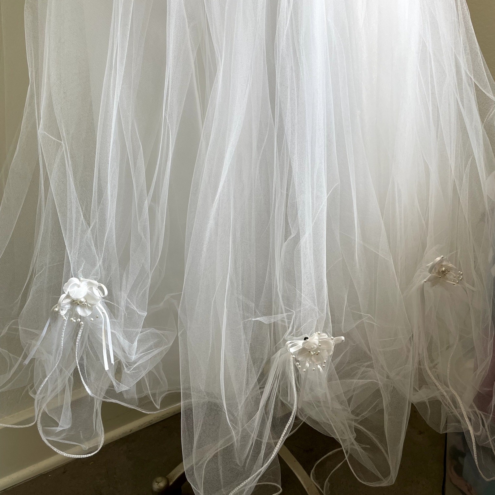 Vintage 80s White Formal Tool Ballgown Dress communion wedding flower girl 10/12