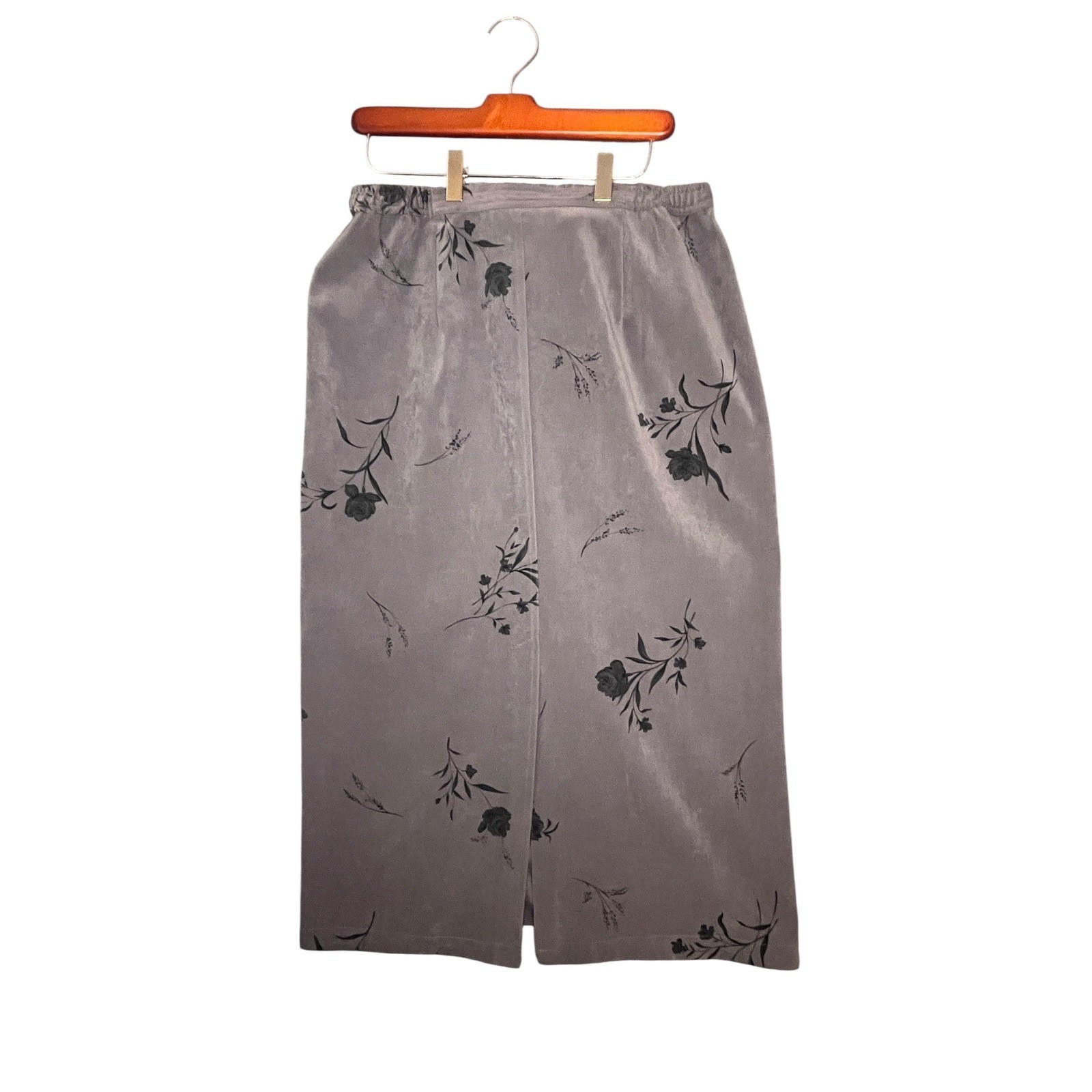Gray Floral Maxi Skirt 16P Vintage 90s Y2K Dark Academia Whimsigoth Grunge Goth