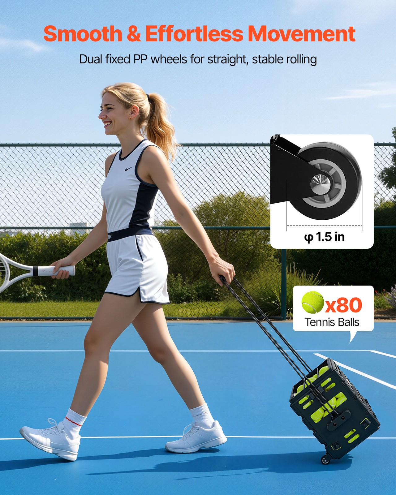 VEVOR Tennis Ball Hopper Holds 80 Tennis Balls Basket Pickleball Cart with Wheel