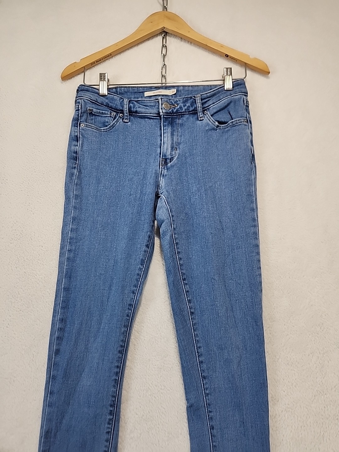 как выглядит Levis 711 Skinny Stretch Distressed Raw Hem Cuff Jeans Womens Sz 26 LIght Wash фото