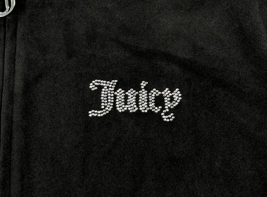 как выглядит Juicy Couture Track Jacket Womens XL Black Full Zip Hooded Rhinestone Velour Y2K фото