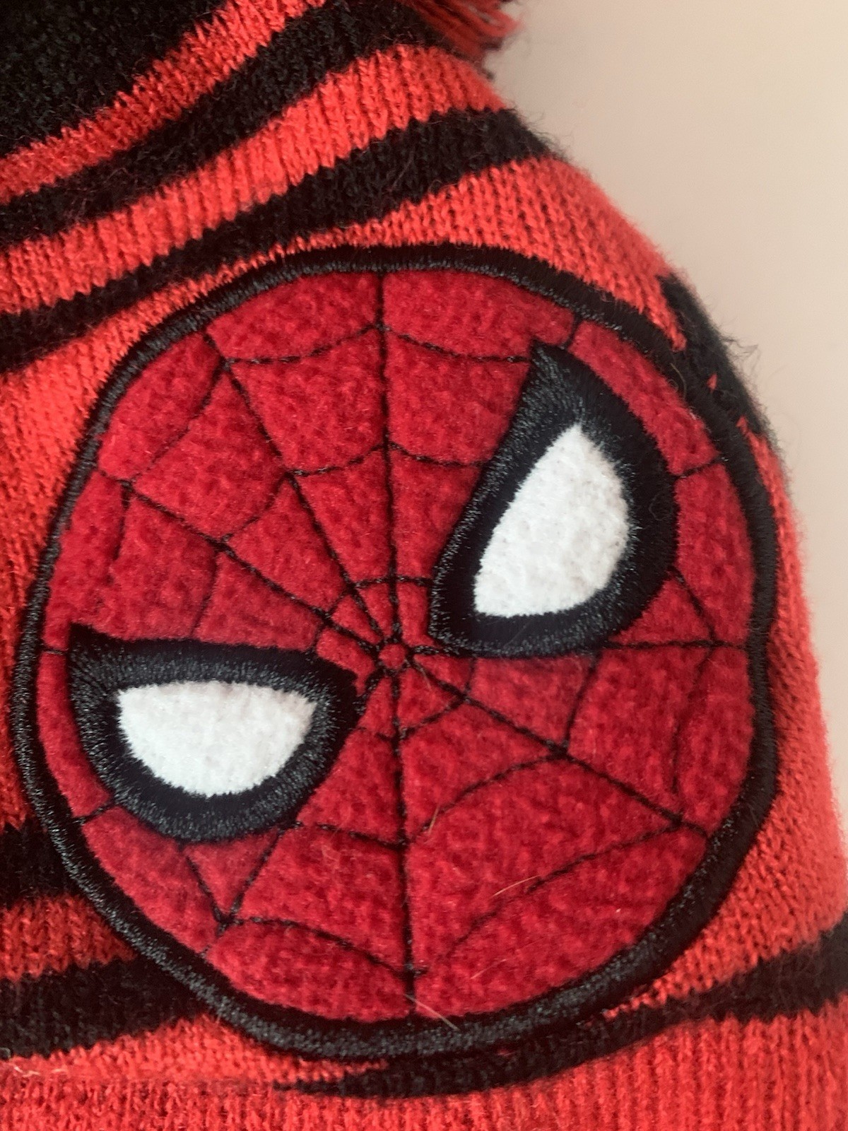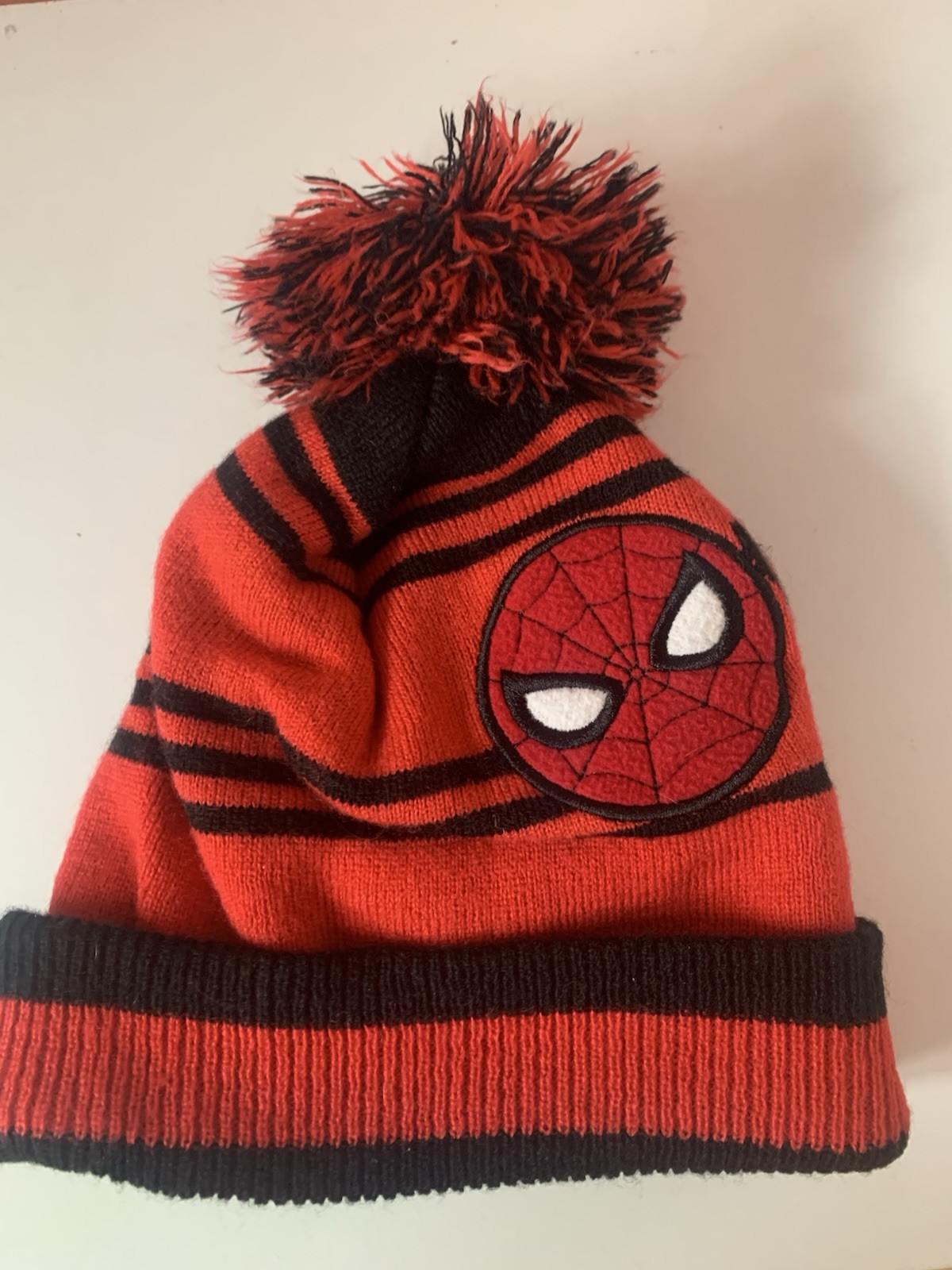 как выглядит Marvel Comics Spider-Man Kids Winter Hat Pom Pom Red Black Beanie 2 Hat Lot фото