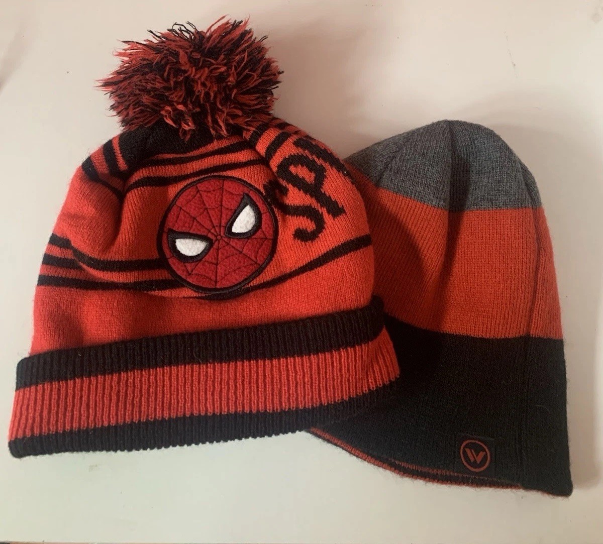 Marvel Comics Spider-Man Kids Winter Hat Pom Pom Red Black Beanie 2 Hat Lot
