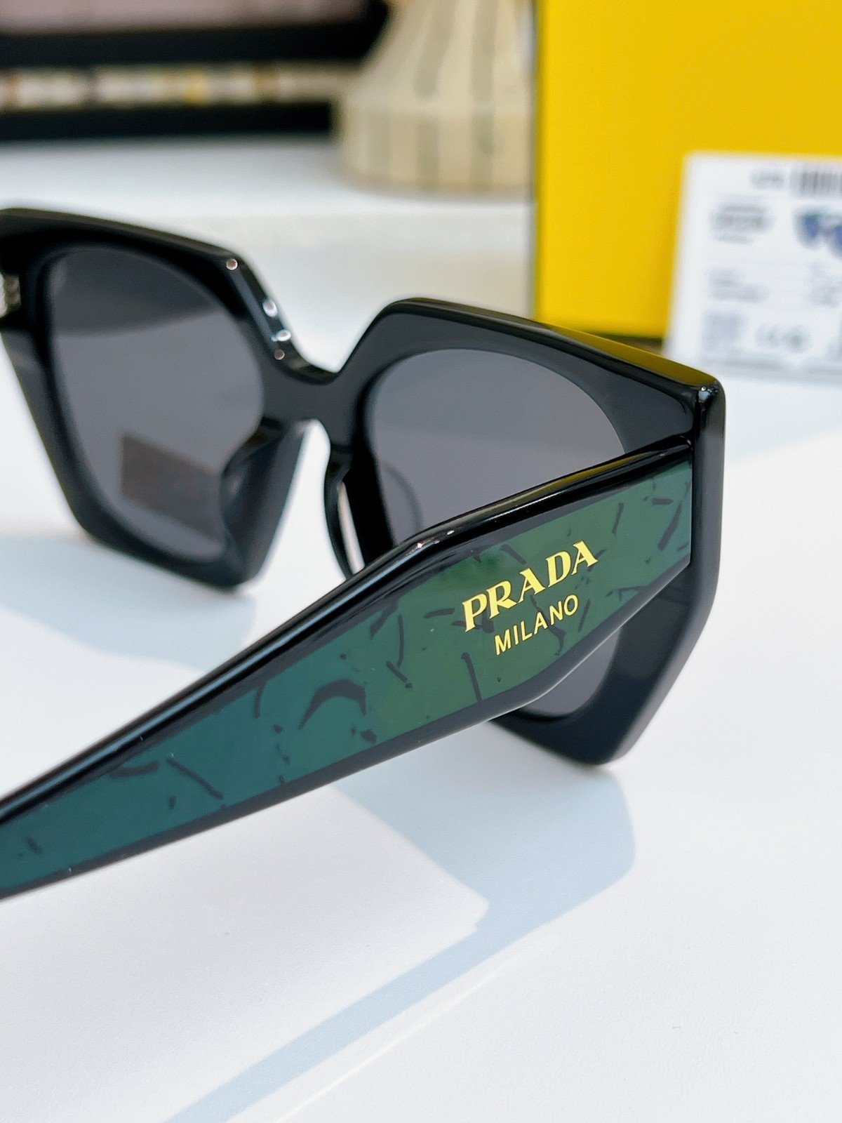 как выглядит Prada PR 15WS Sunglasses Authentic Women Black Green Square UV400 Shades w/ Box фото