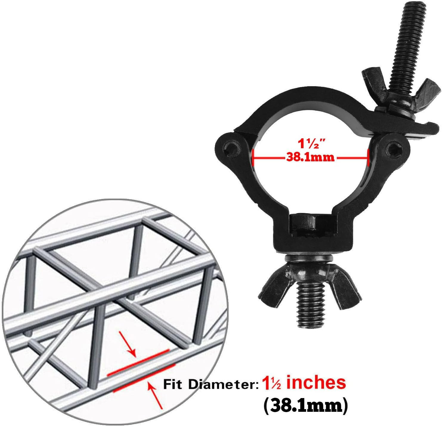 10 Pack Black Truss Clamps, 1-1/2 OD Aluminum Alloy DJ Stage Light Clamp Hook F