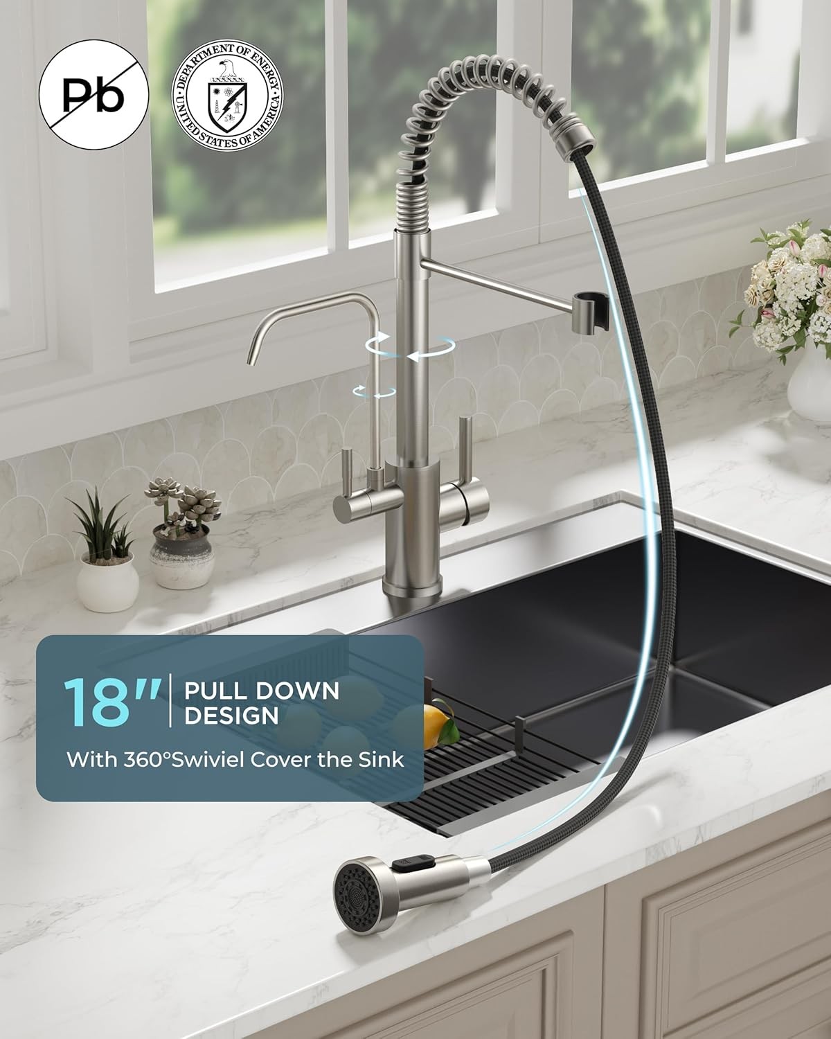 2 in 1 Kitchen Faucet with Drinking Water Filter Brushed
