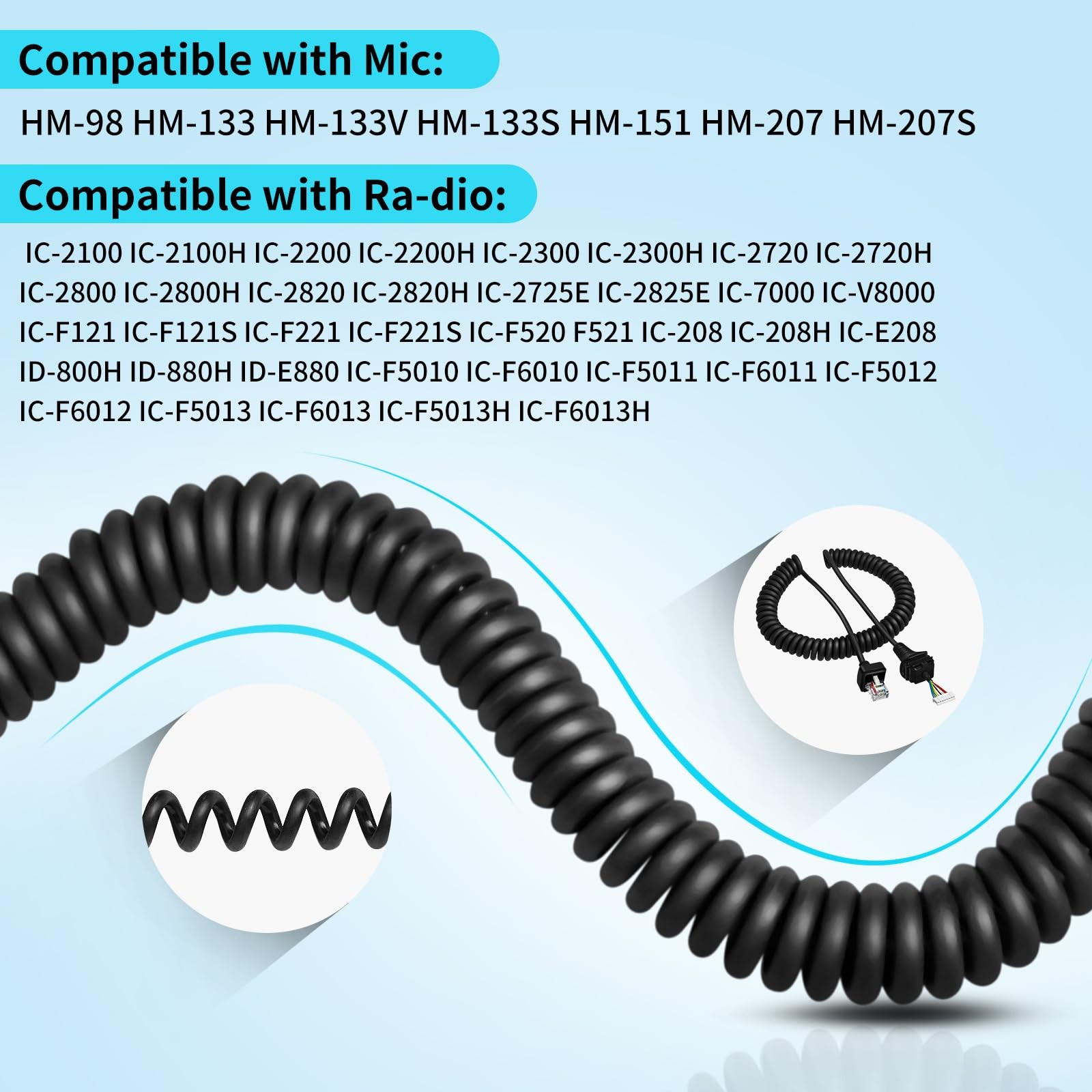 8-Pin RJ45 HM-152 Microphone Mic Cable Cord for ICOM F121/S F221/S F221 F520 ...
