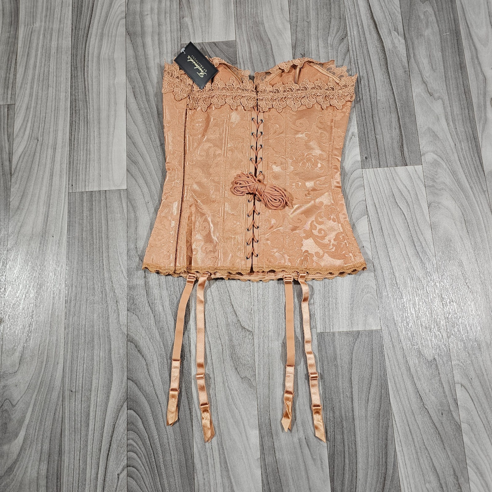 Frederick's of Hollywood Beige Caramel Jacquard Corset Top with Garter Straps