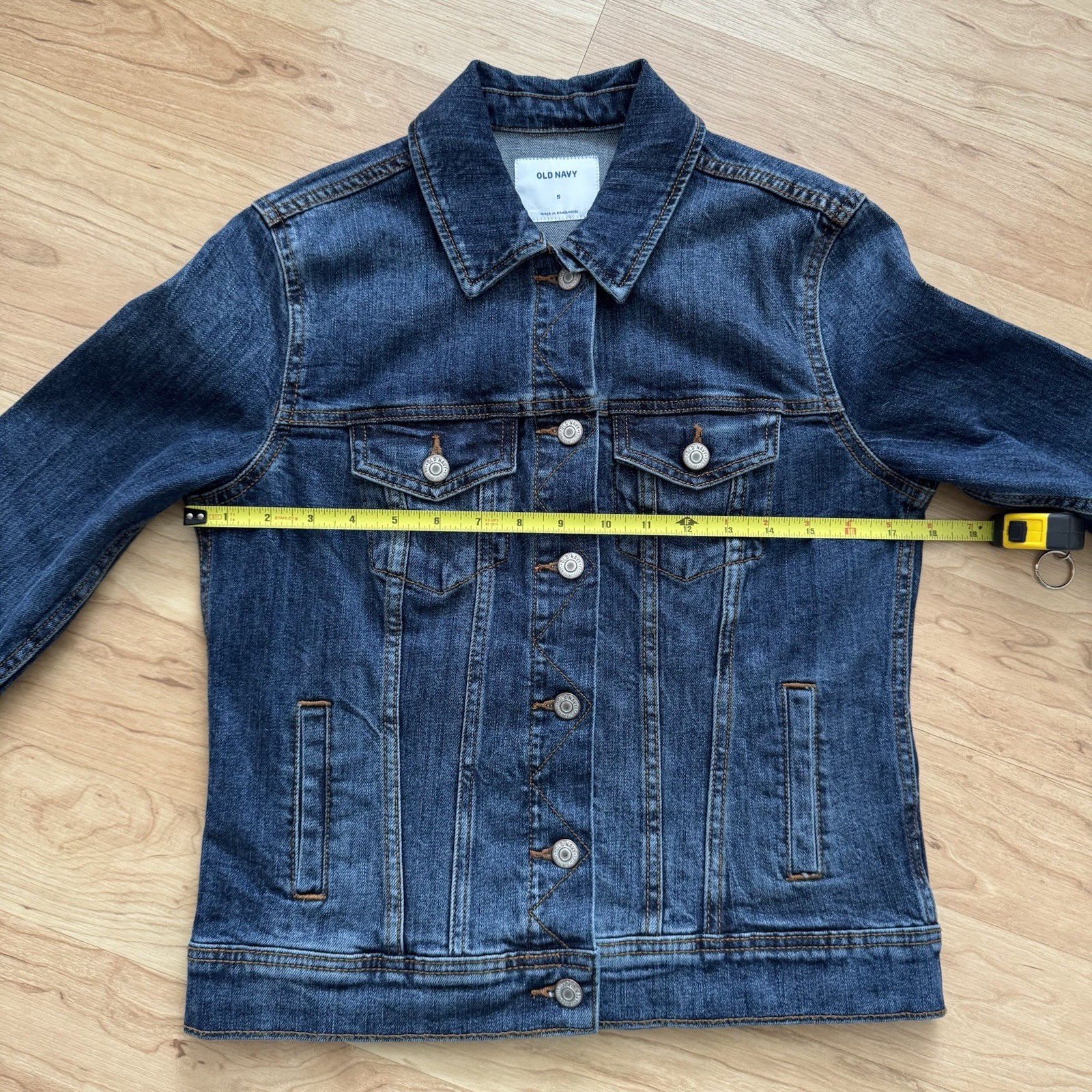 как выглядит SMALL OLD NAVY DENIM JEAN JACKET WOMENS BLUE STRETCH CLASSIC TRUCKER CASUAL NWOT фото