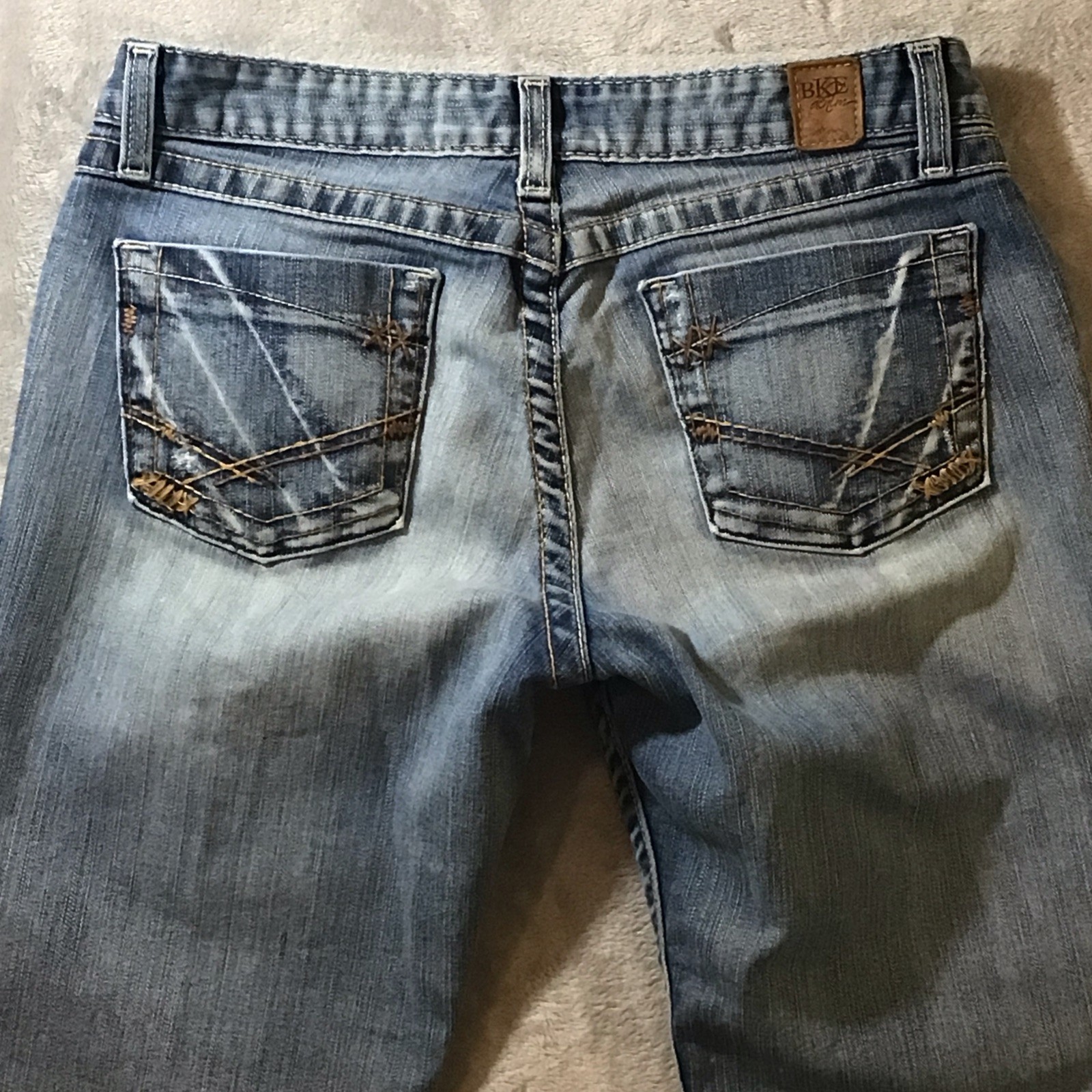 как выглядит BKE Denim Stretch Jeans Womens 30x31.5 Kate Boot Cut Jeans Distressed 15101R фото