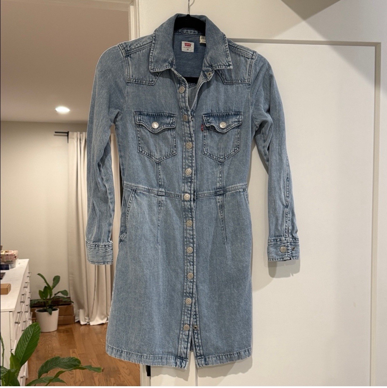 как выглядит Levi s Women s Button Denim Jean Shirt Dress XS Long Sleeve фото