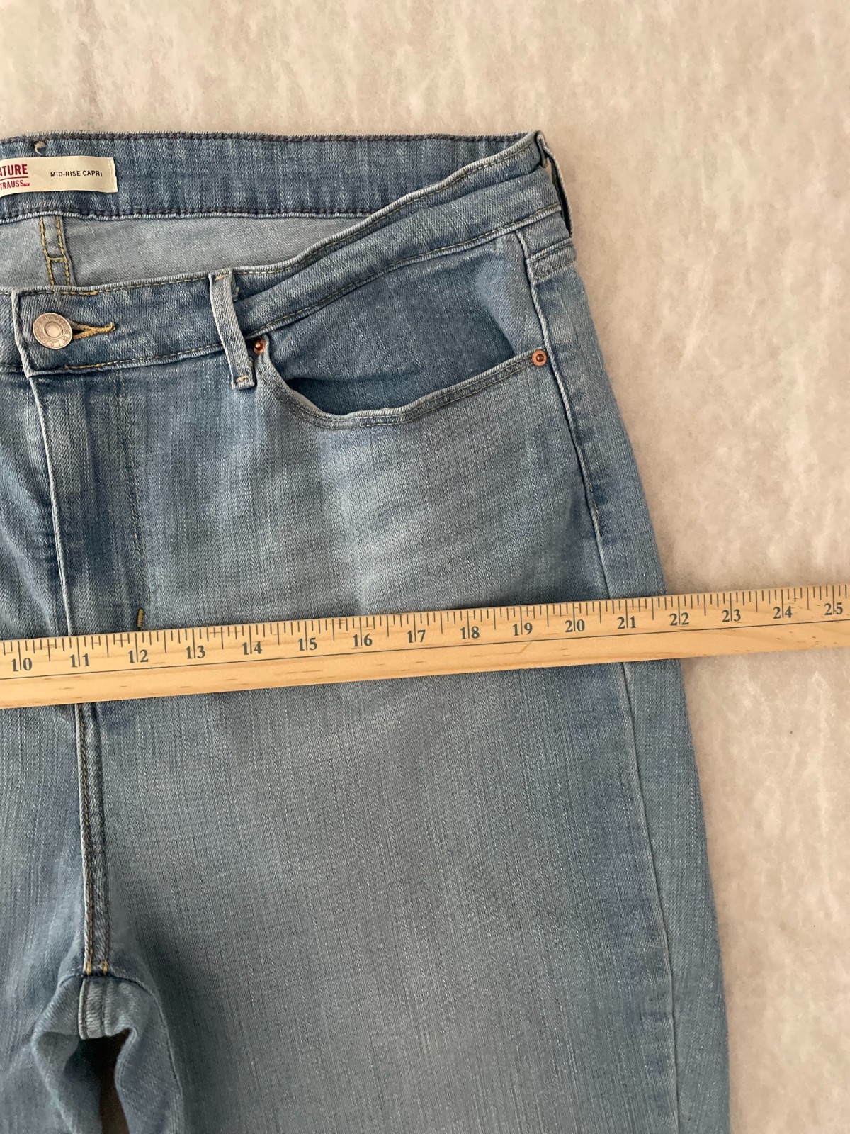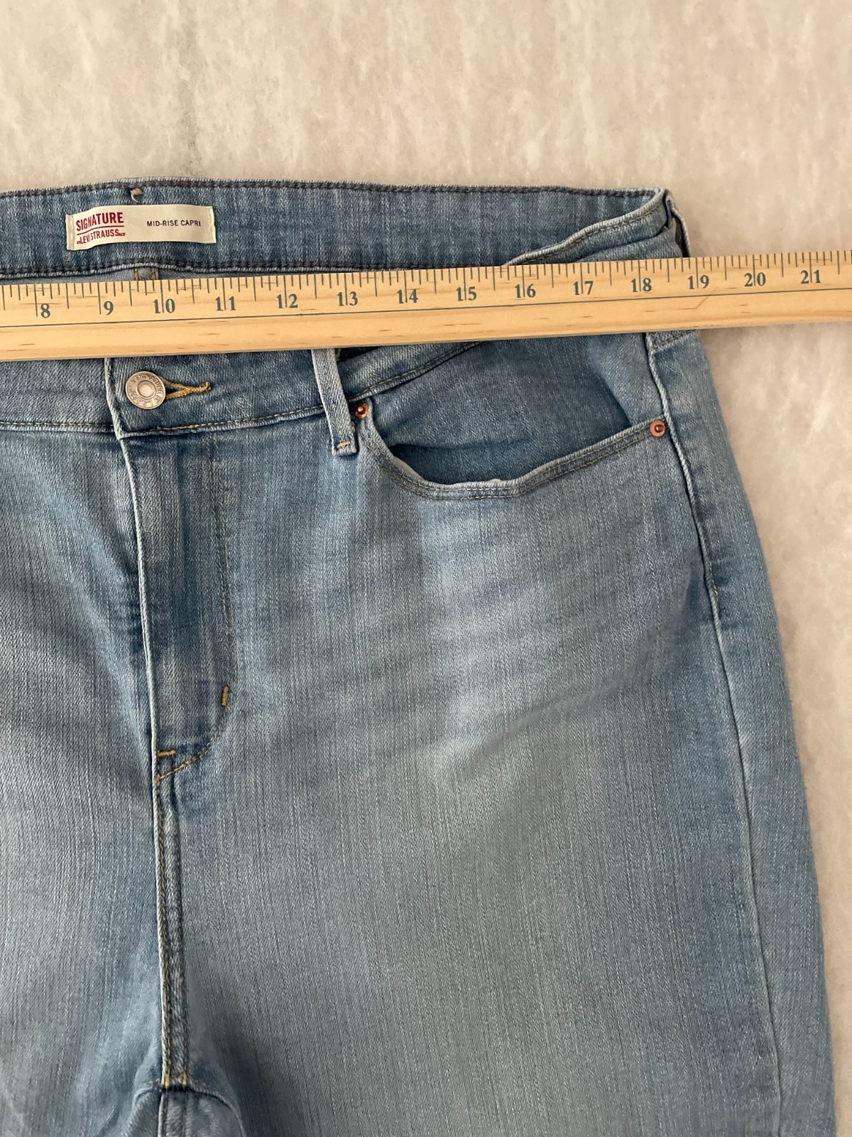 как выглядит Signature By Levi Strauss Co. Womens Blue Mid Rise Denim Capri Jeans Size 18 фото