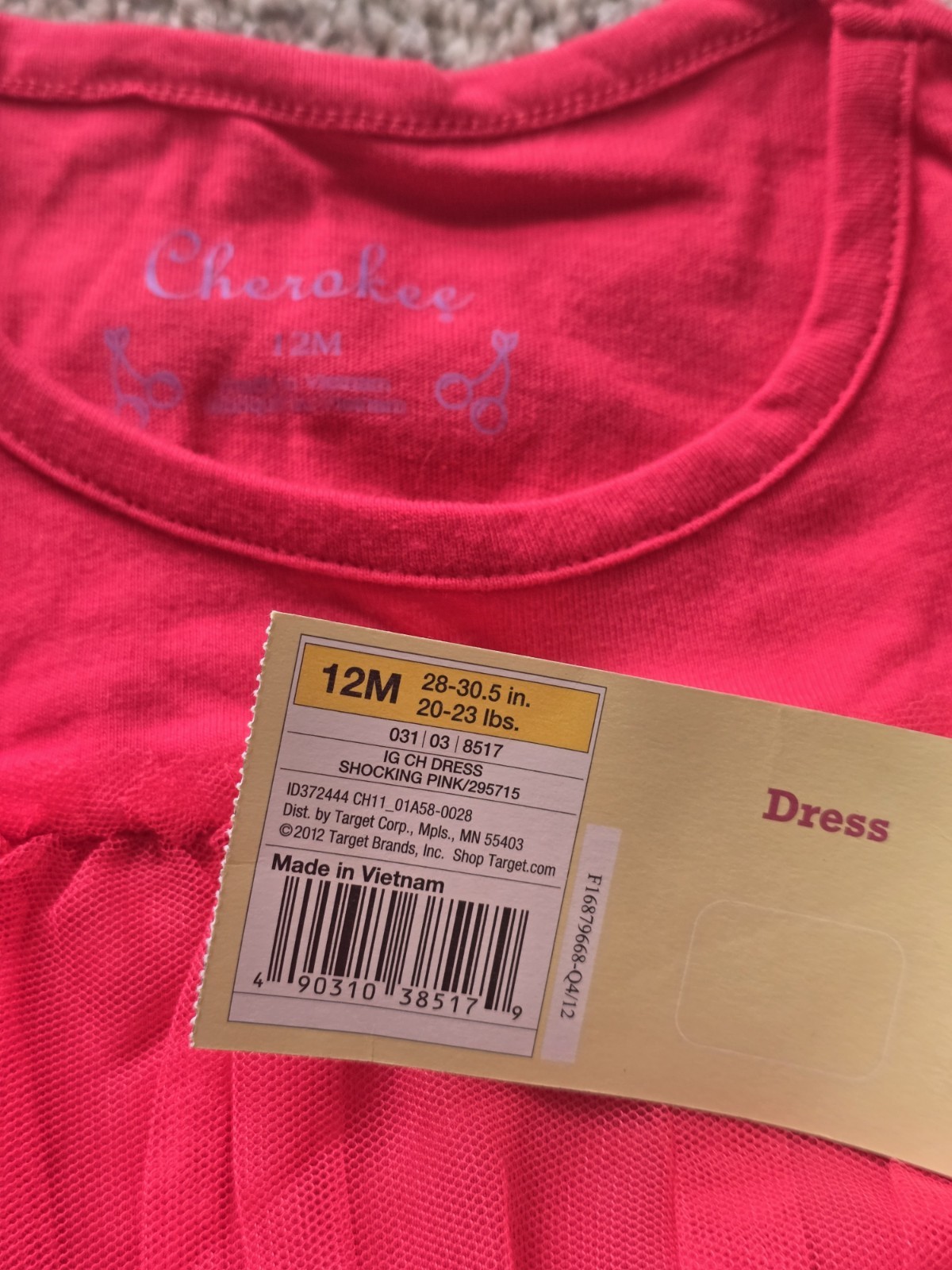 Cherokee Shocking Pink Tutu Dress 12M, Bow Accent, Short Sleeve, Cotton Tulle