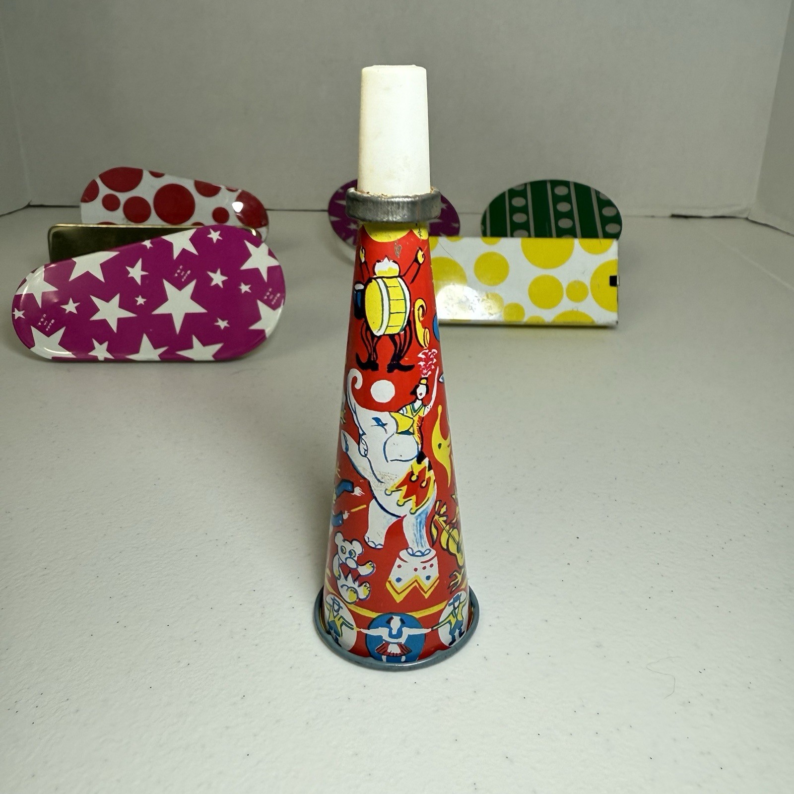 как выглядит New Years Eve Lot Of Mixed 7 Vintage Tin Noise Makers Litho Metal Toy USA фото