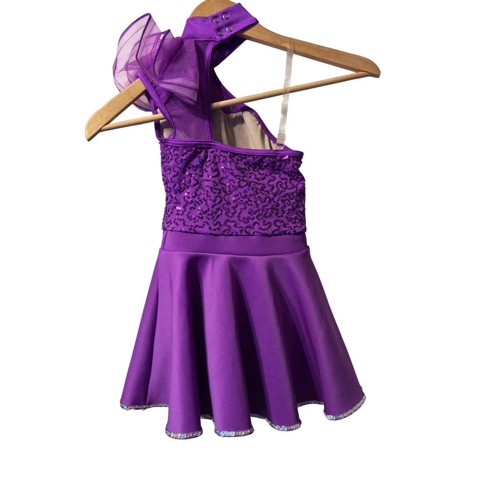 Weissman Sequin Dance Costume Kids SC Purple Excellent One Shoulder Ruffle Dress