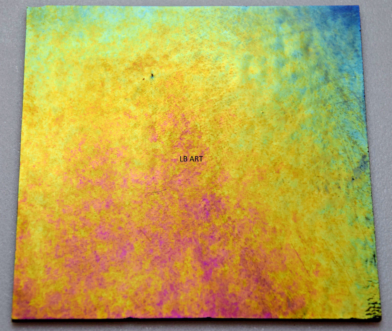 как выглядит 1128.39 - 3"x 3" GREEN GOLD IRIDESCENT ON PURPLE BULLSEYE 3mm THICK GLASS 90 COE фото