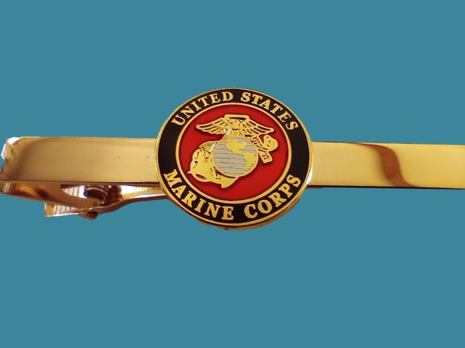 как выглядит U.S MILITARY MARINE CORPS TIE BAR OR TIE TAC CLIP ON TYPE ROUND USMC INSIGNIA фото