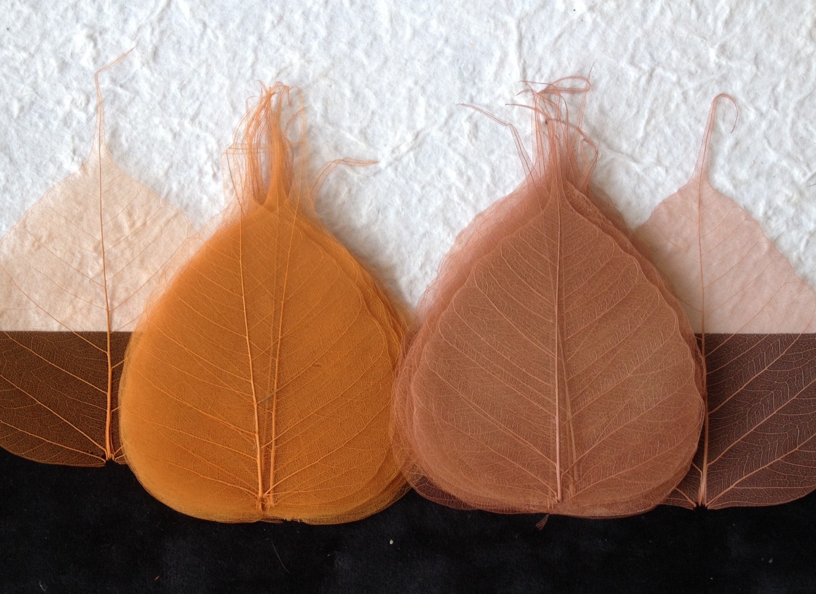 25 Burnt Sienna Po Bo Banyan leaves skeleton leaf see through crafts cards Large