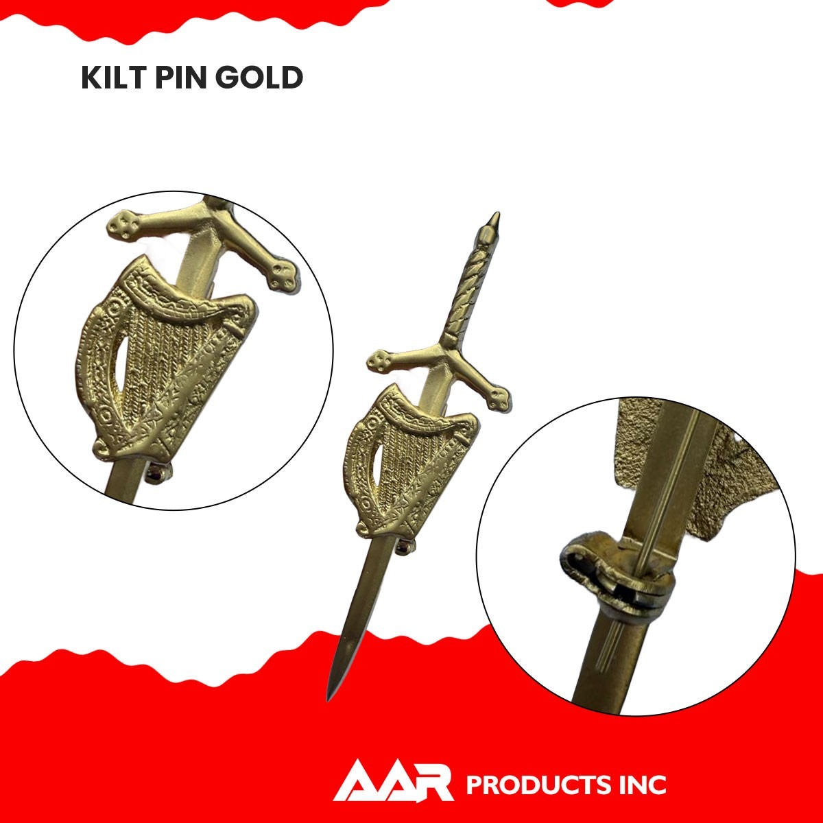 Kilt Pins Scottish Irish Celtic Highland Harp Sword kilts Pin 4 3 Gold Pins AAR