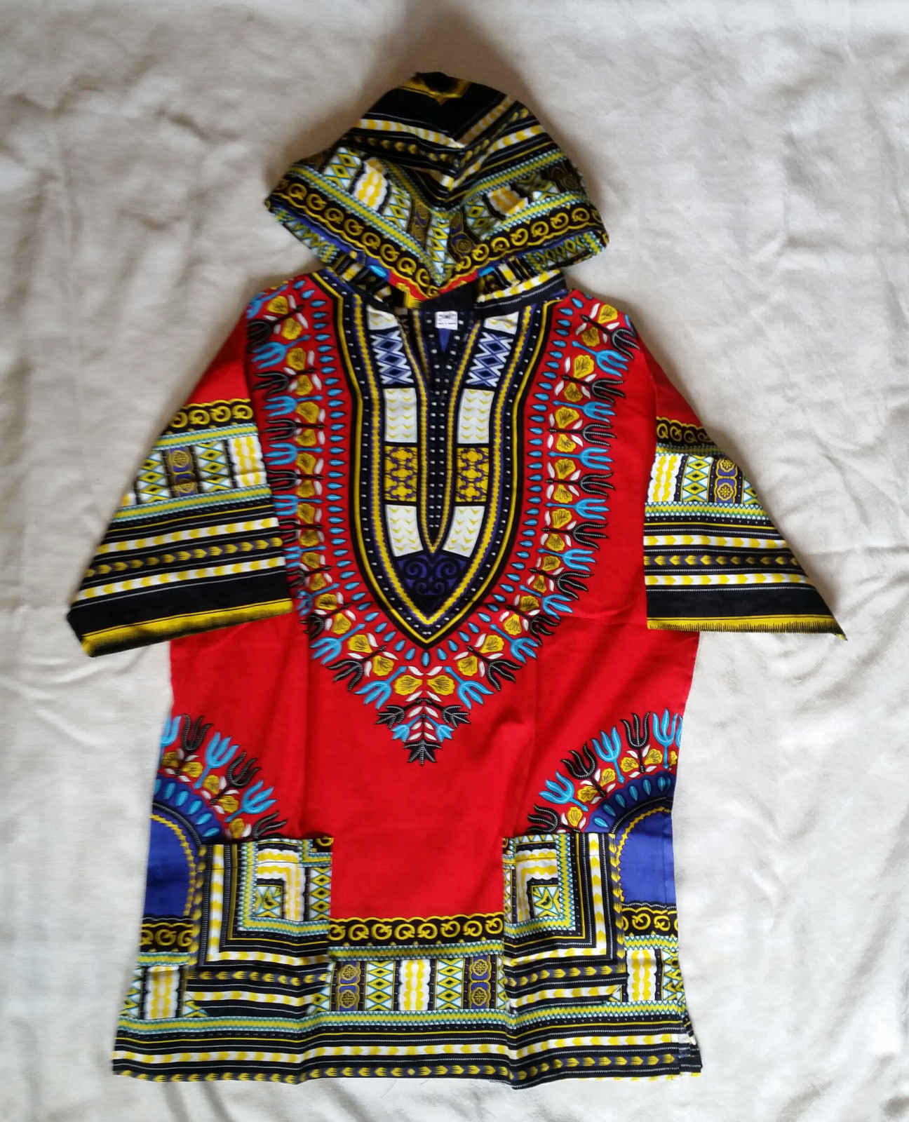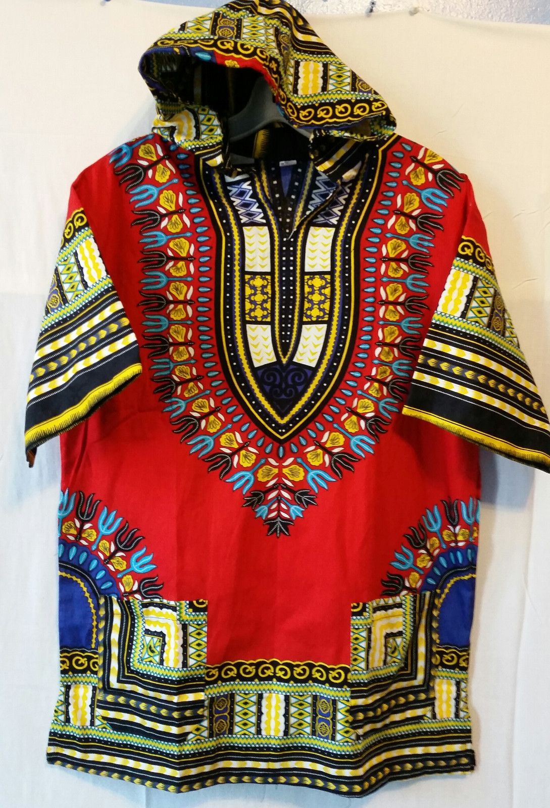 как выглядит Men Women African Dashiki Hoodie Top W/ Hood Traditional Blouse Red M L XL фото
