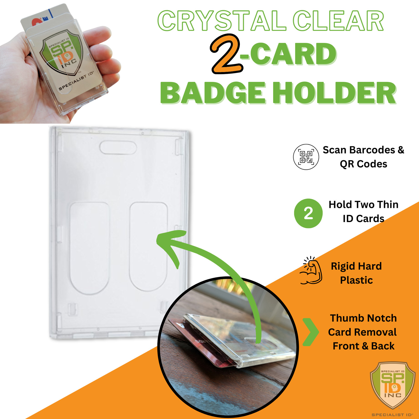 Clear Vertical Multiple Badge Holder - Top Loading Two Cards - by Specialist ID