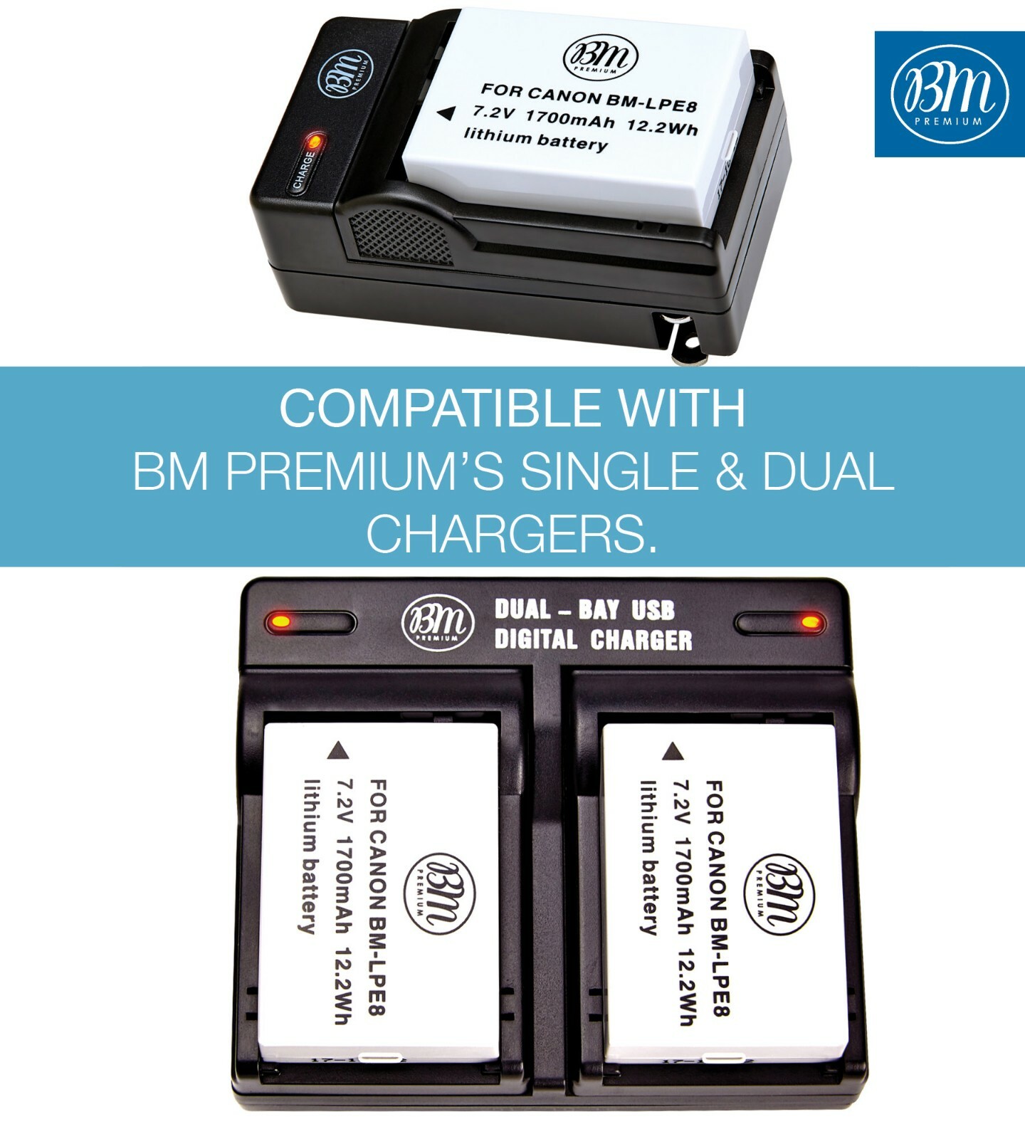 BM Premium 2-Pack LP-E8 Batteries for Canon EOS Rebel T2i, T3i, T4i, T5i Cameras