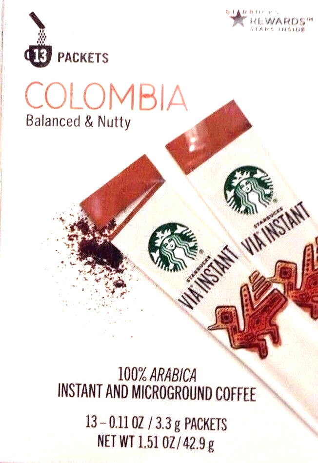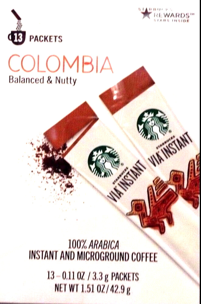 13 PACKETS STARBUCKS VIA INSTANT COFFEE COLUMBIA MED ROAST BEST 02/2025 OR LATER