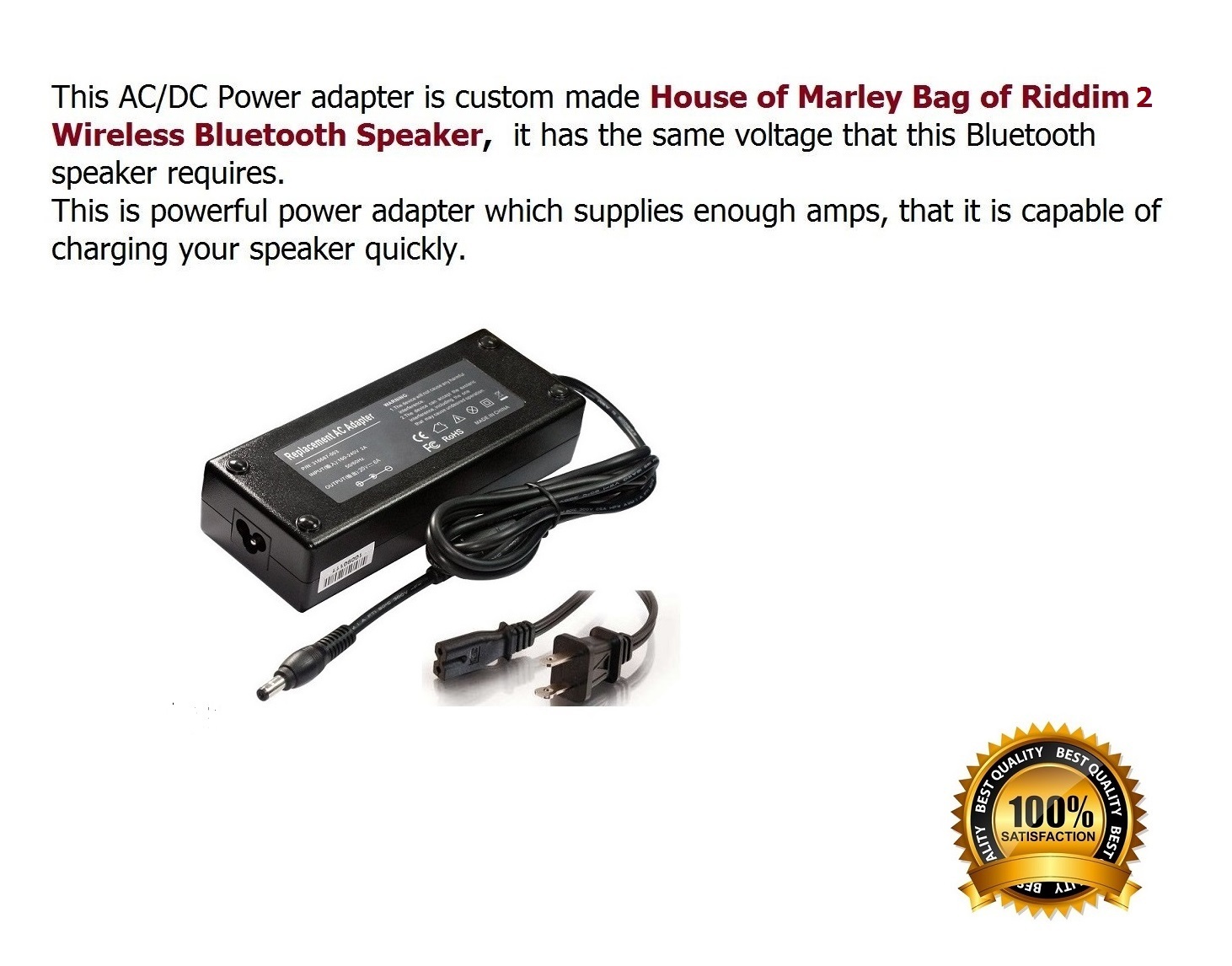 AC Adapter for The House of Marley Bag of Riddim 2 Bluetooth Speaker