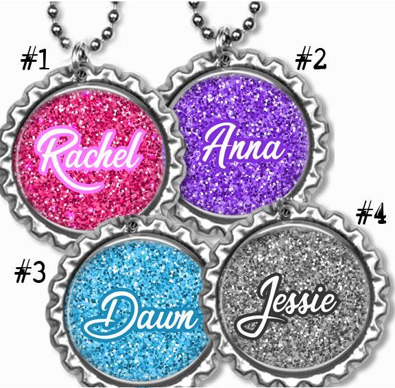 Custom Name Glitter Kids Bottle Cap Necklace w/Chain Handcrafted Personalized