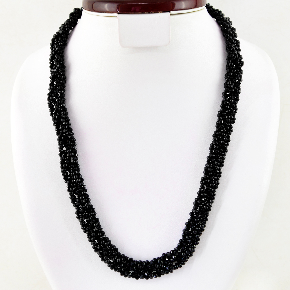 253.50 CTS NATURAL SINGLE STRAND FACETED BLACK SPINEL ROUND BEADS NECKLACE DG