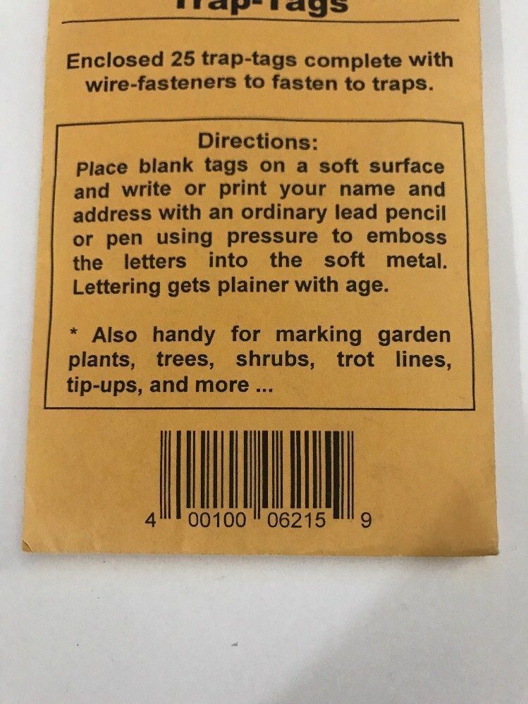как выглядит "Write Your Own" Animal Trap Tags 25-Pack-Ships N 24hrs фото