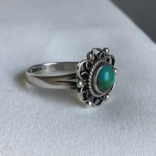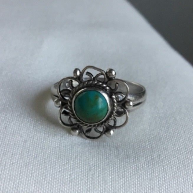 Vintage Signed 925 GA01 Sterling Silver Turquoise Filigree Ring Size 5.75