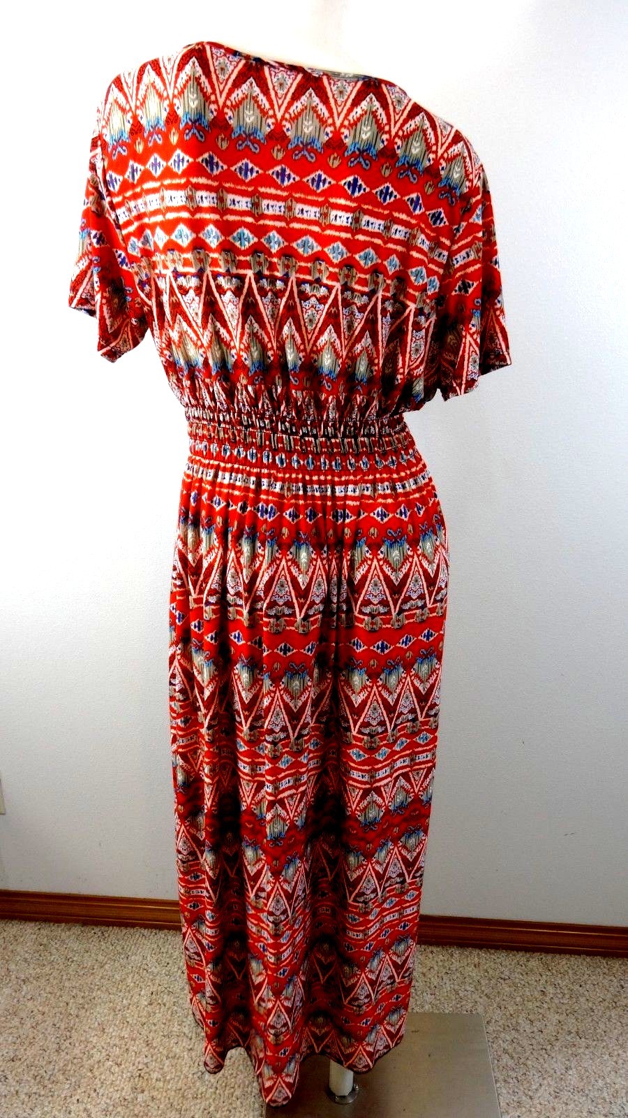 WOMENS JERSEY RED TRIBAL PATTERN MAXI DRESS SIZE M
