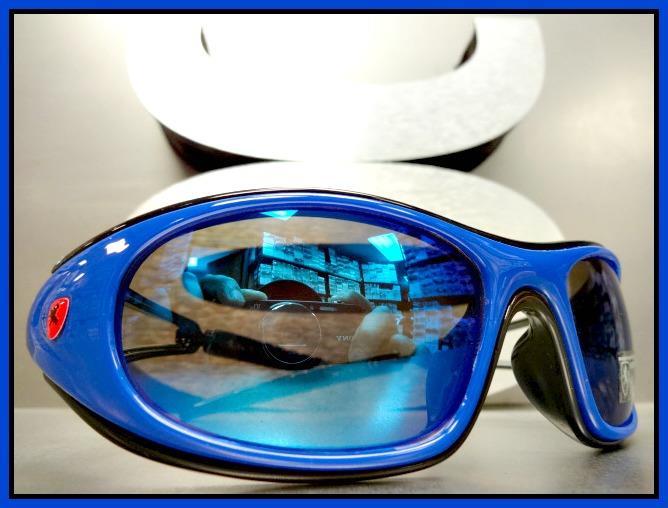 как выглядит Men Motorcycle Biker Wrap Around Sporty Style SUNGLASSES Sleek Blue Frame Lens фото