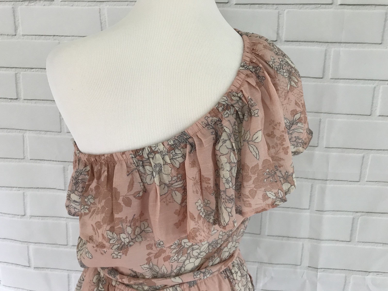 как выглядит Mimi Chica One Shoulder Pink White Ruffle Shorts Romper Size X Small фото