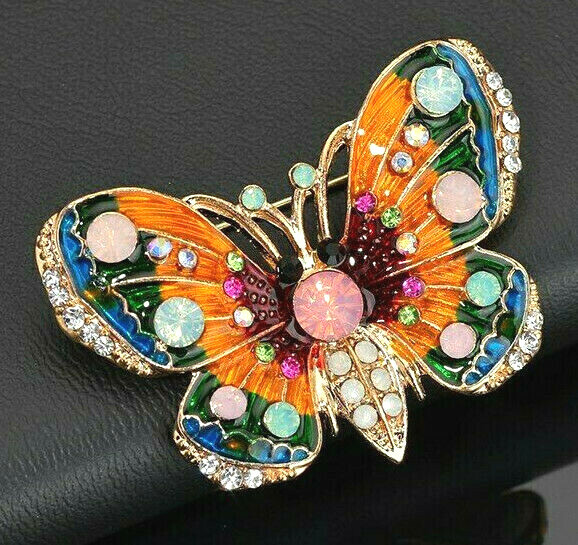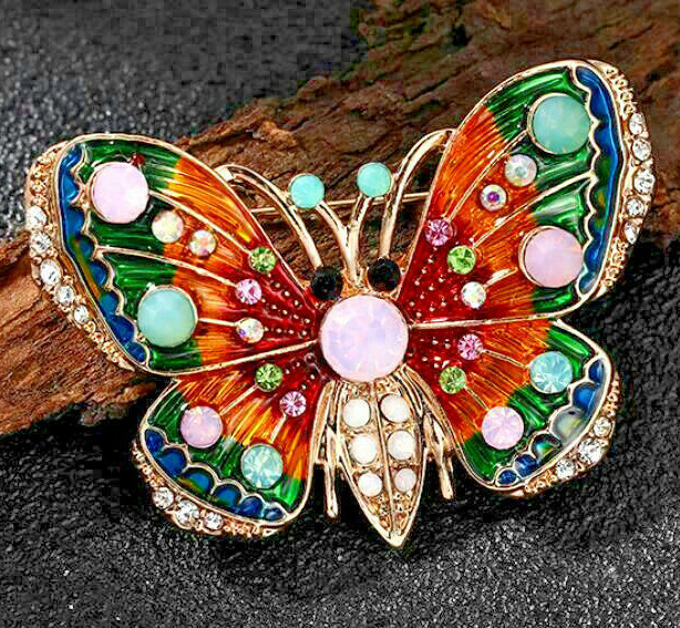 Gorgeous Charming BUTTERFLY Vibrant Colorful RAINBOW Enamel Rhinestone Brooch