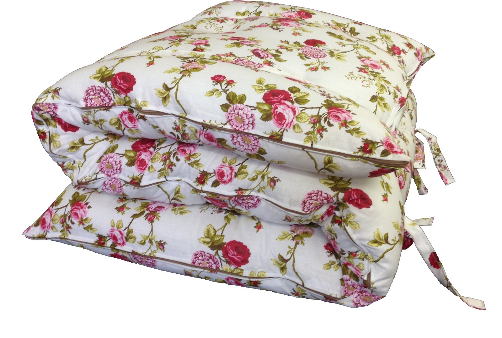 как выглядит Red Roses White Traditional Japanese Floor Rolling Futon Mattress, Thai Mat фото