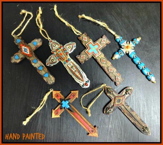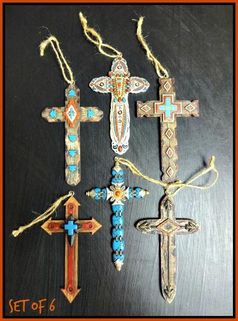 Western Country Rustic Tribal Aztec Cross Christmas Ornament Decor Gift Set of 6