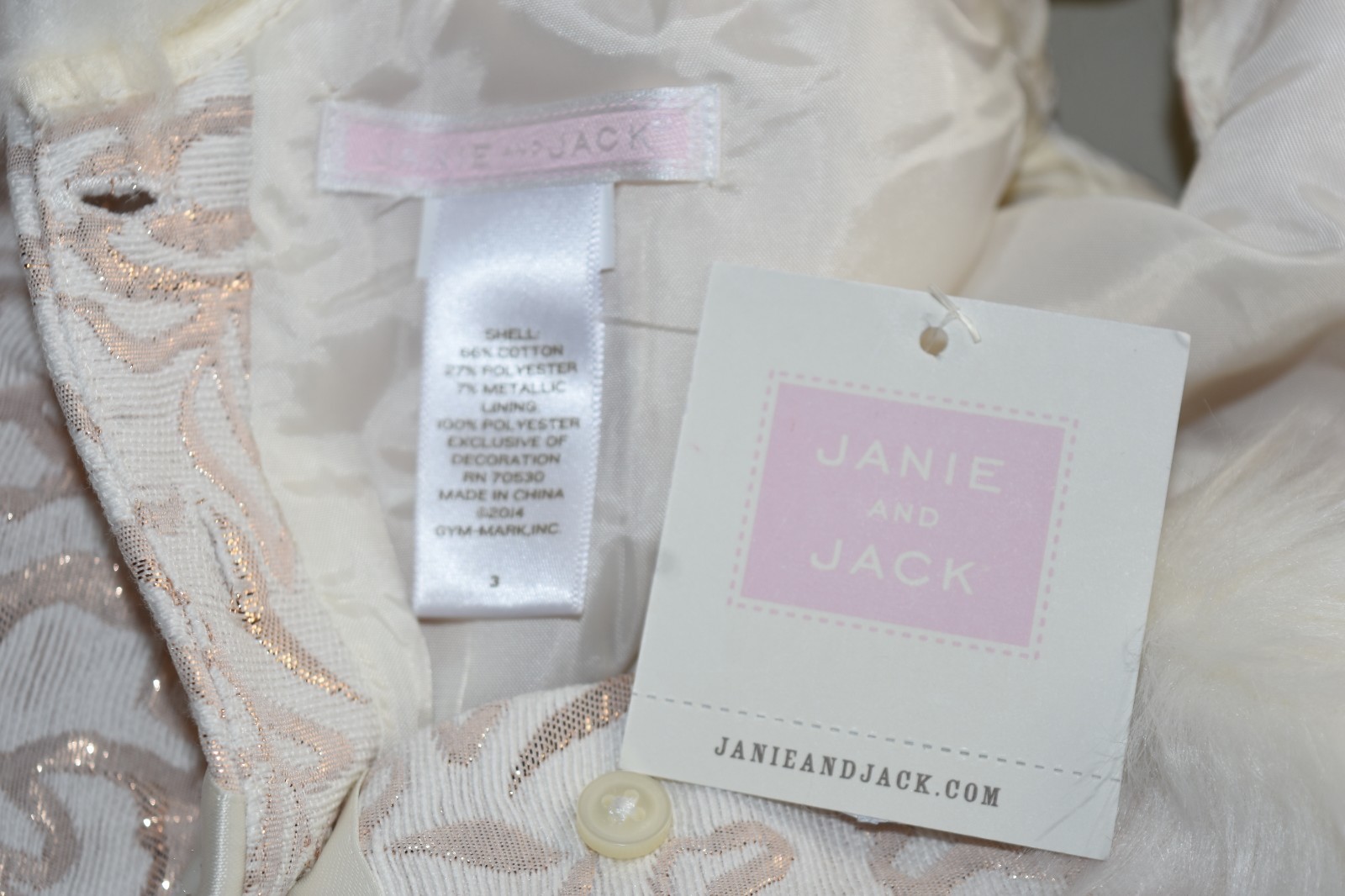 109 NEW Janie Jack Pink Rose Gold Holiday Dress Jacquard Ivory Fur Collar 3