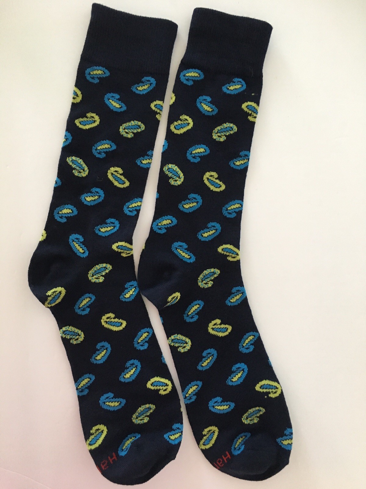 New Mens Hanes Blue Yellow Multi-Pattern Casual Crew Socks 3 Pair Sz: 6-12